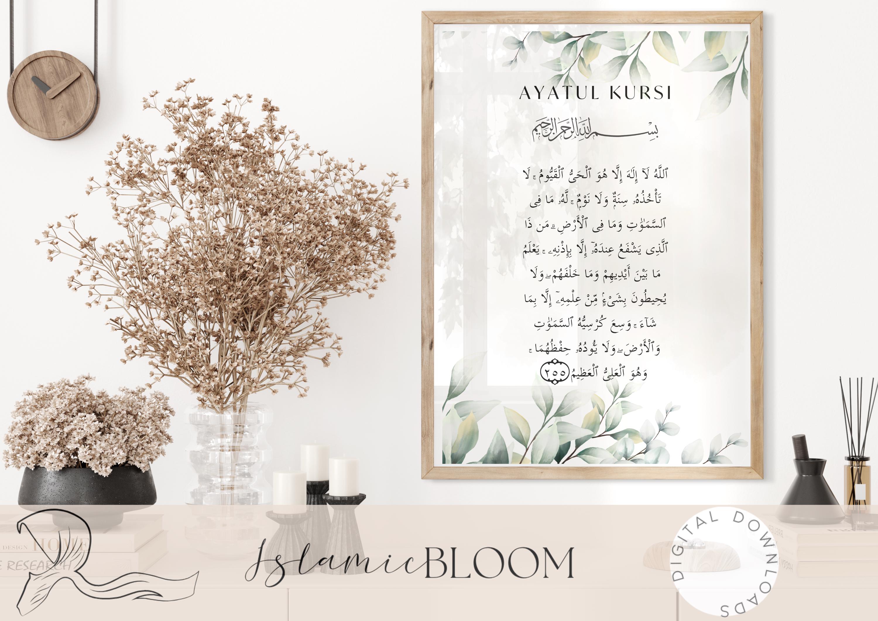 Ayatul Kursi Print: Islamic Wall Art, Botanical Theme (Digital Download)