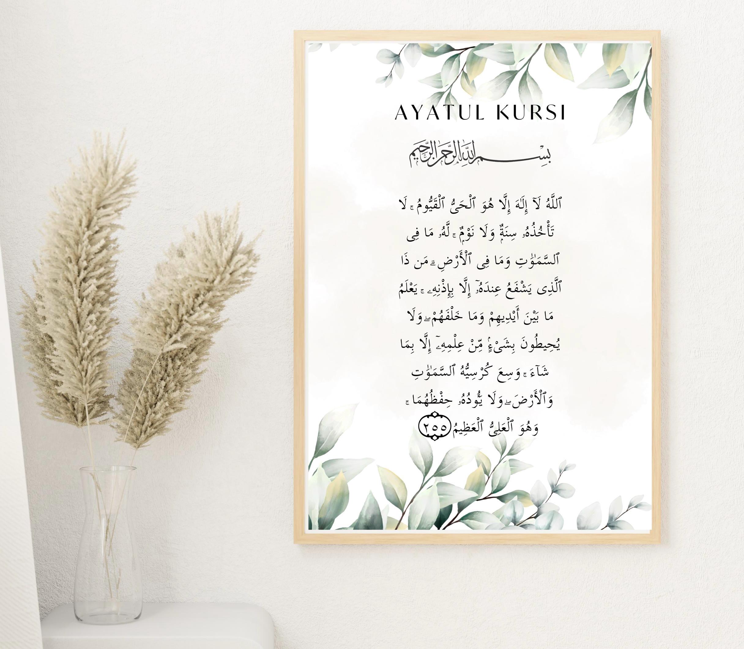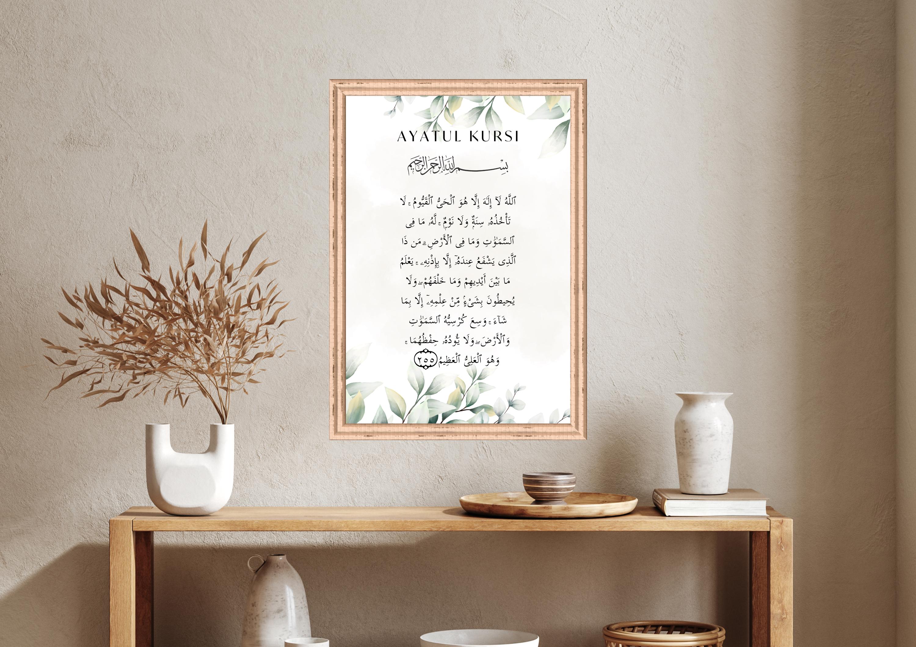 Enhance your space with this beautifully designed Ayatul Kursi digital download, featuring elegant Arabic calligraphy and a soft botanical theme. This Islamic wall art is perfect for your home, prayer room, or as a thoughtful gift for Ramadan, Eid, or any special occasion.