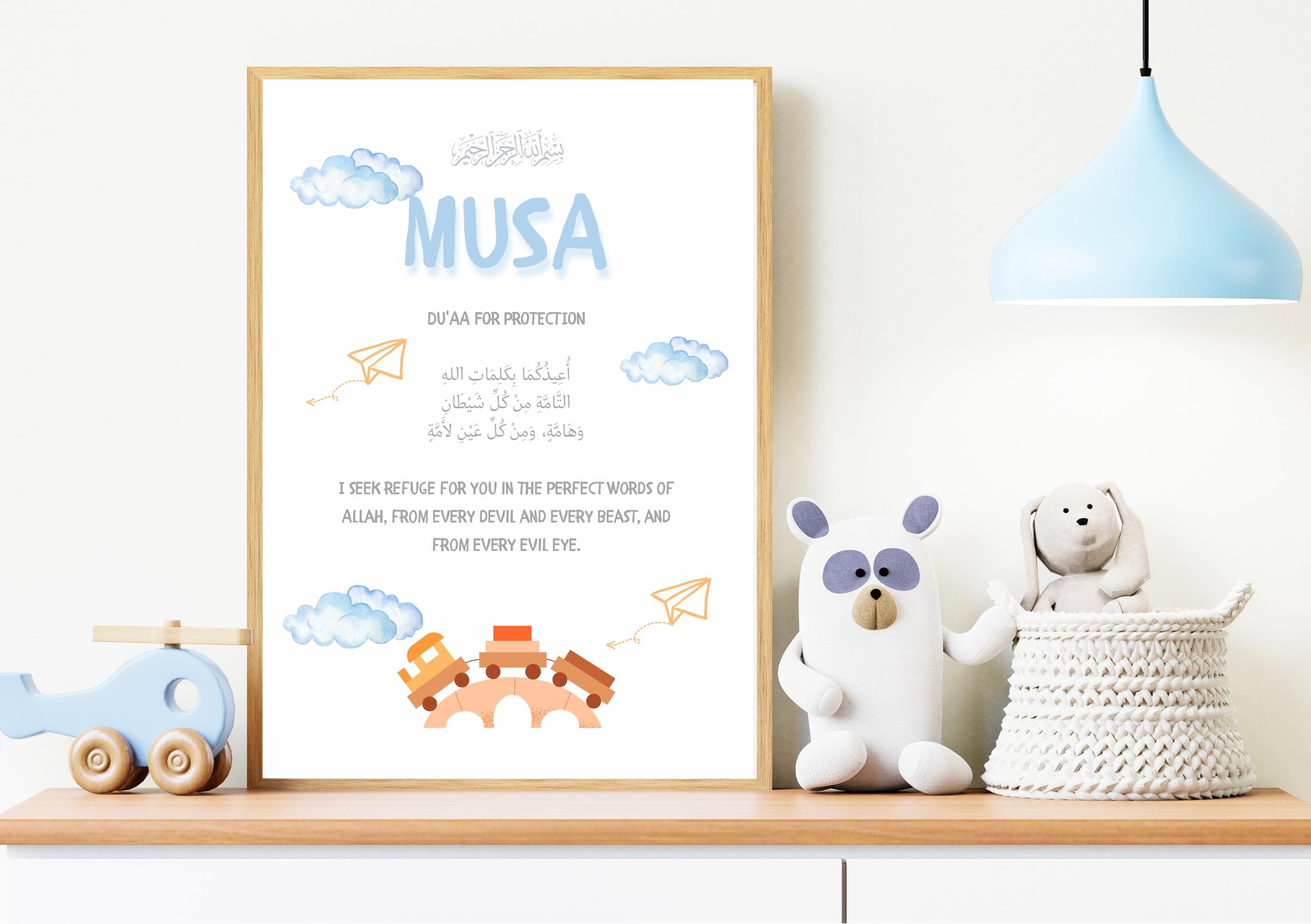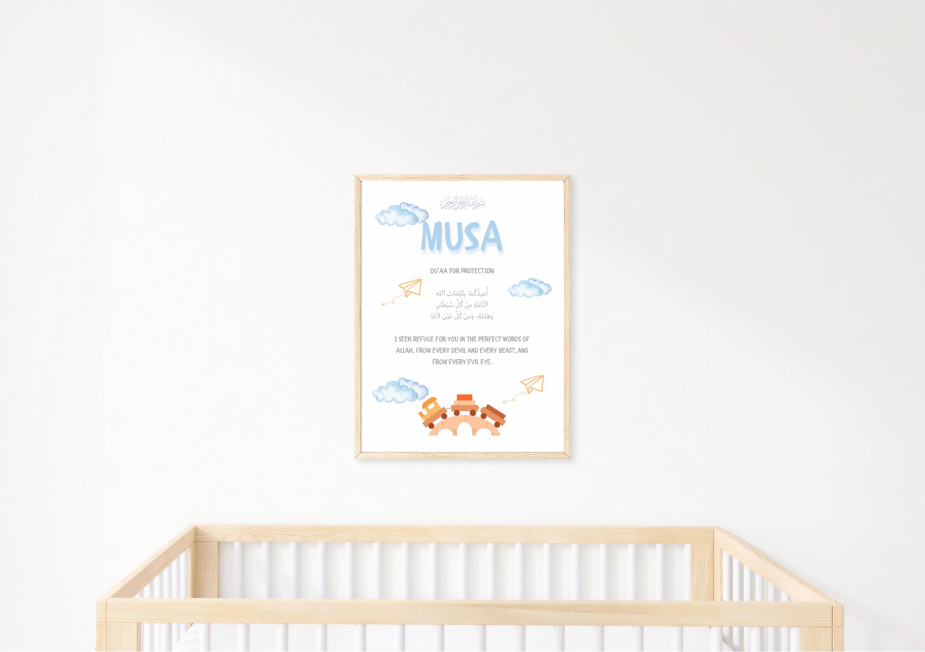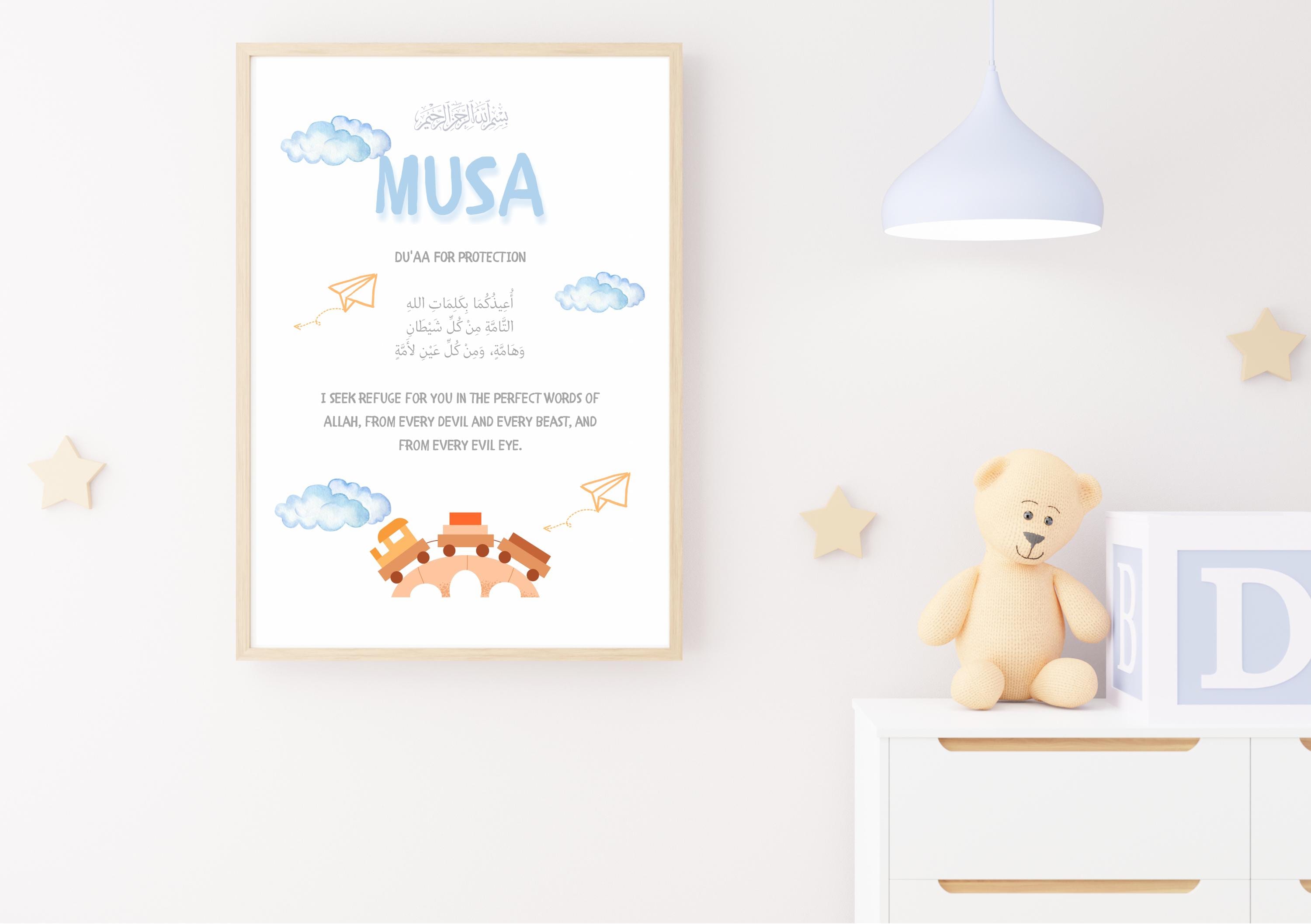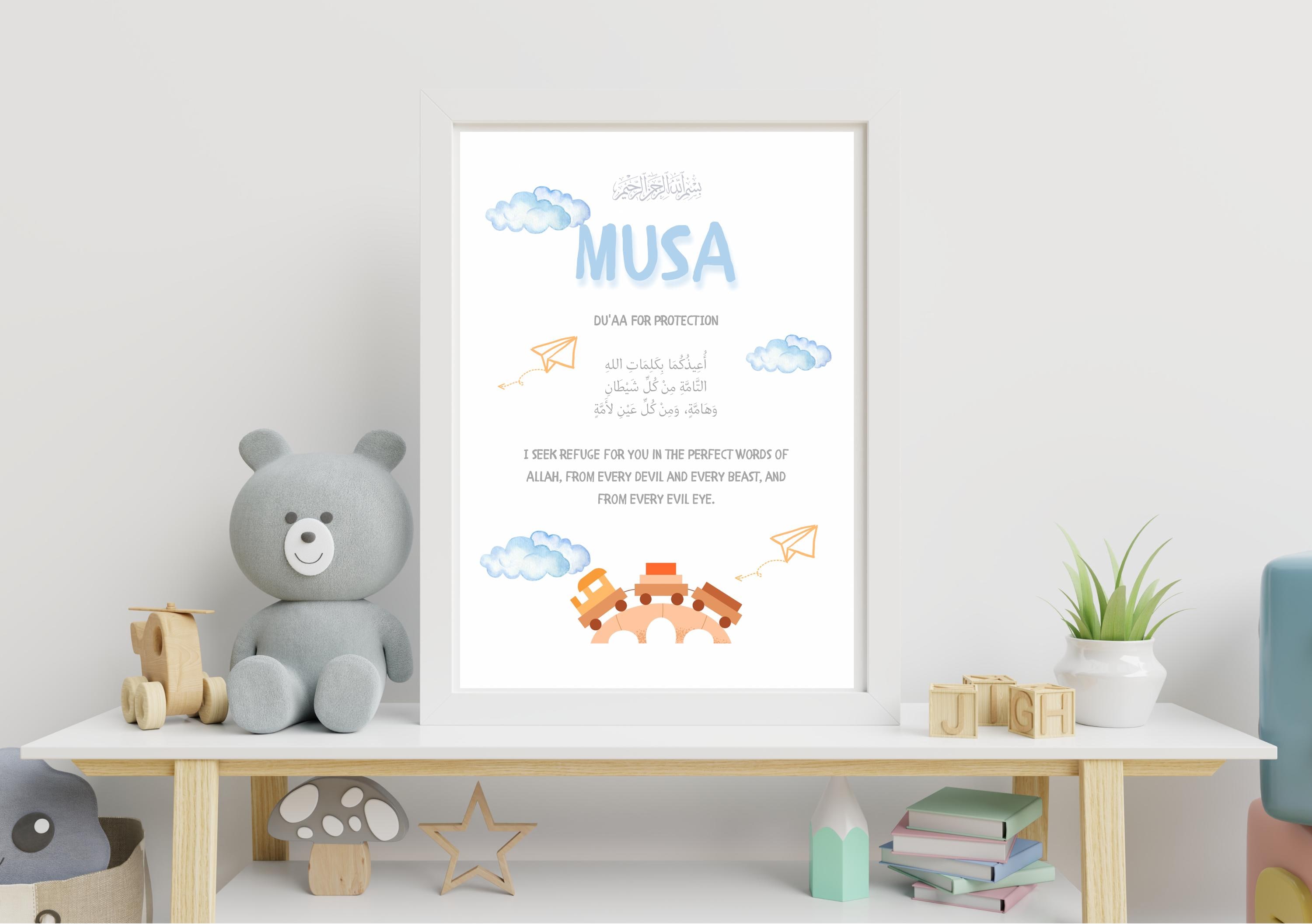 Personalized Islamic Nursery Art | Protection Dua, A4 Printable (Digital Download)