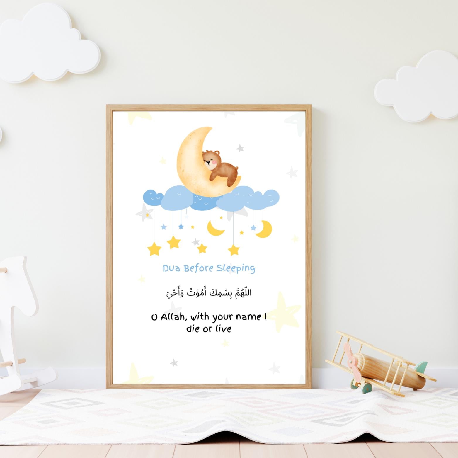 Help your little one learn and remember their daily duas with this beautifully designed set of 2 Islamic digital prints – the Dua Before Sleeping and Dua After Waking Up. These prints make a perfect addition to any child’s room, prayer space, or nursery, combining faith and aesthetics in a gentle, calming design.