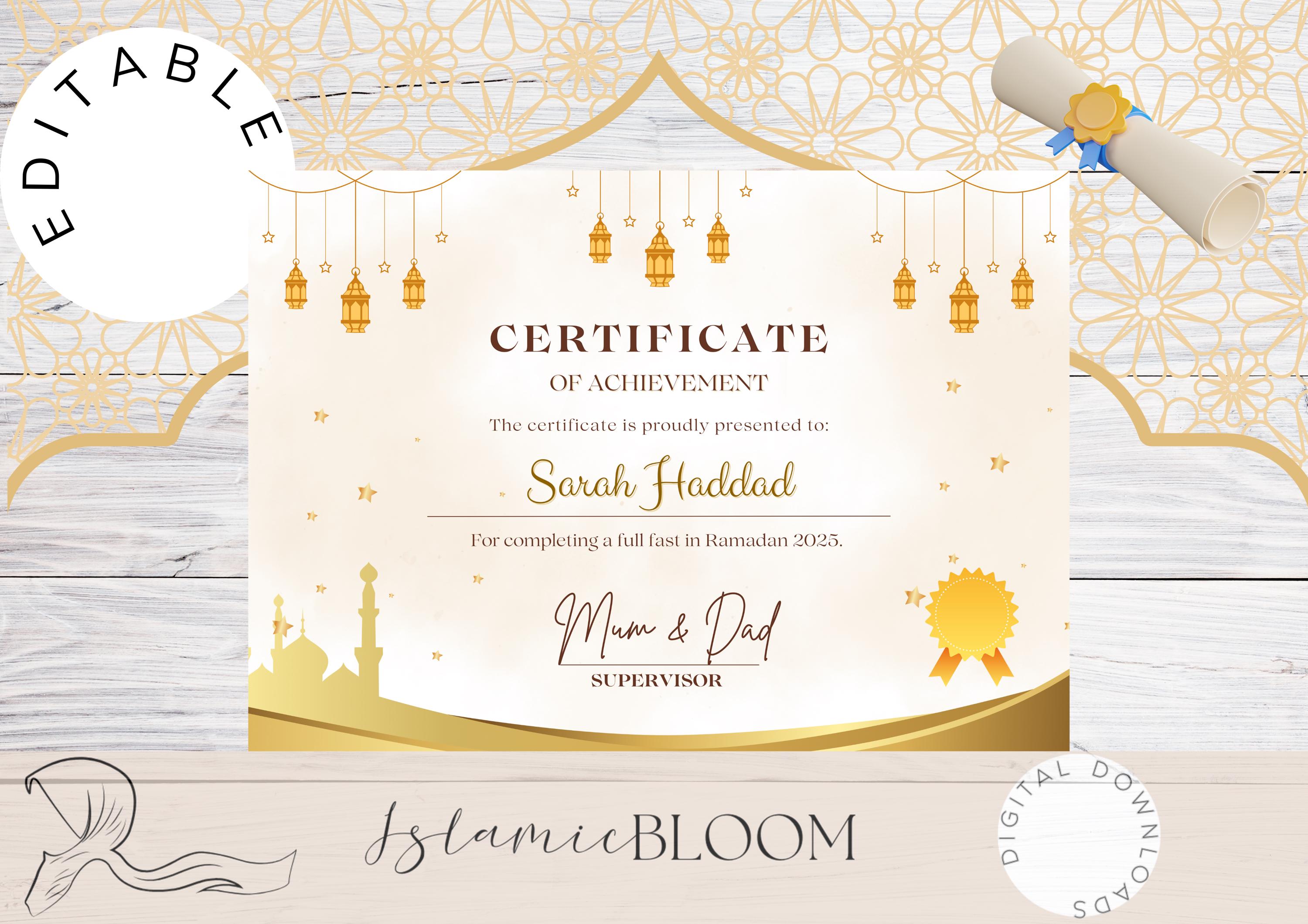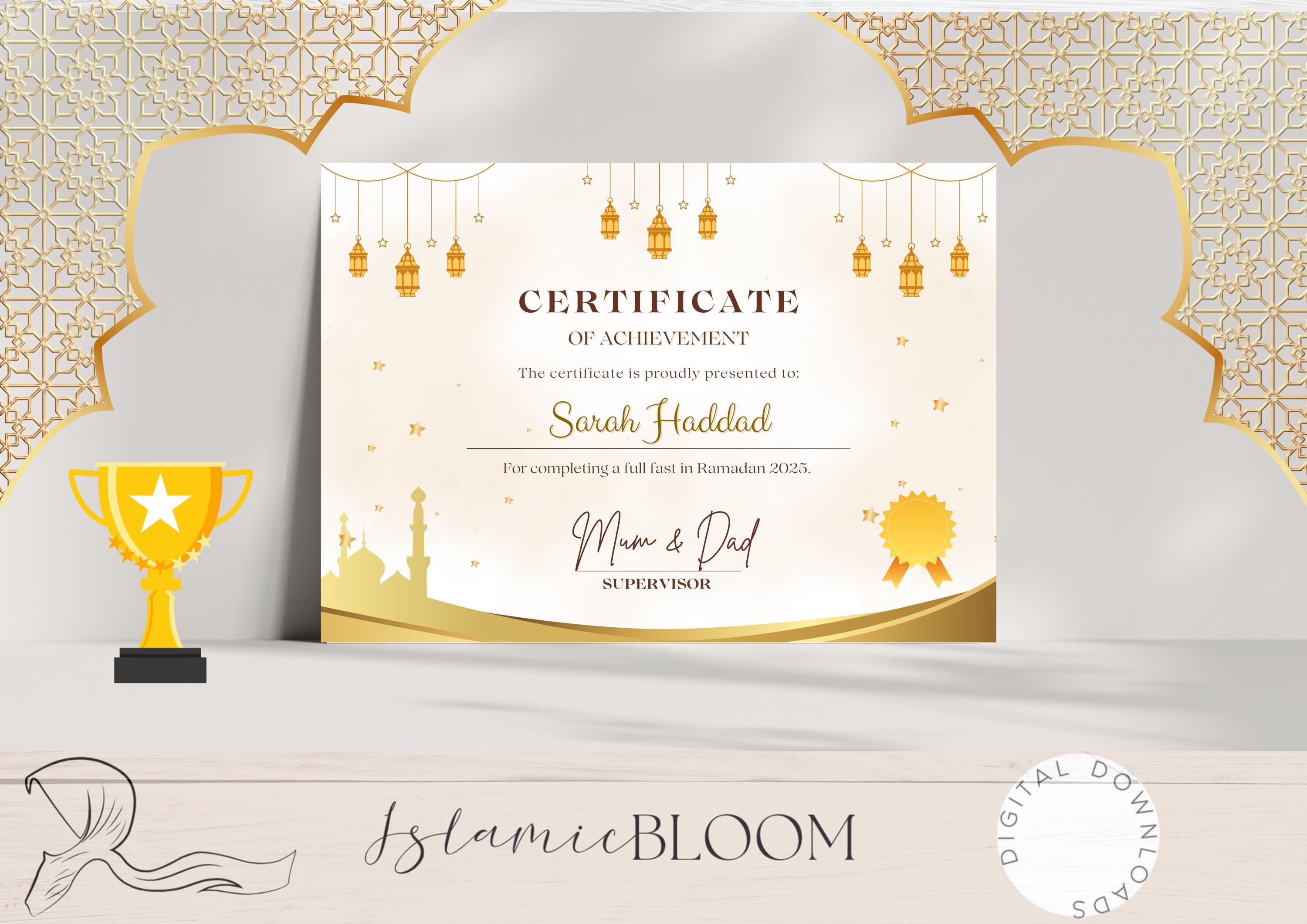 Personalised Ramadan Achievement Certificate, First Fast, Quran Completion (Digital Download)