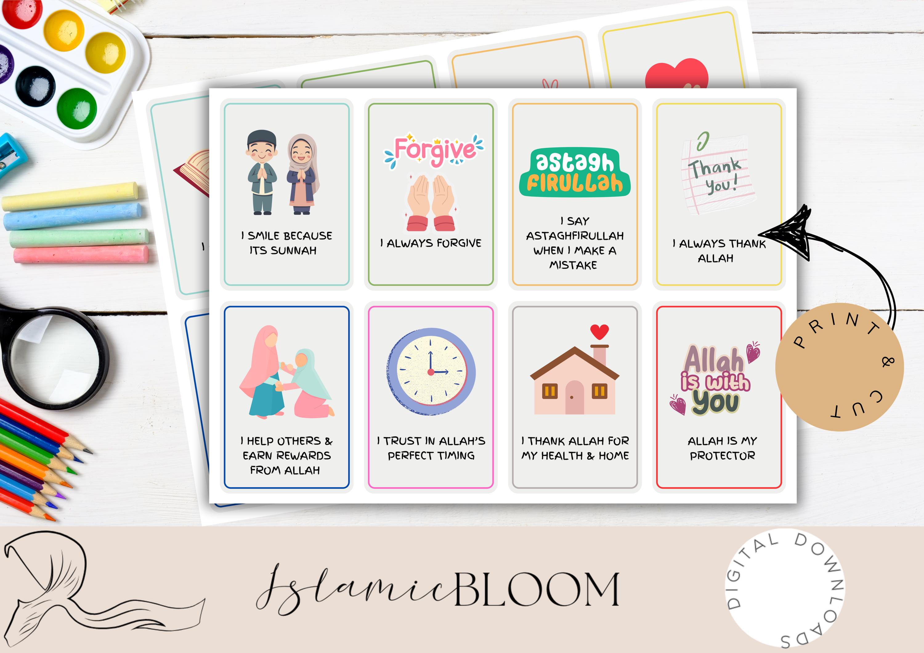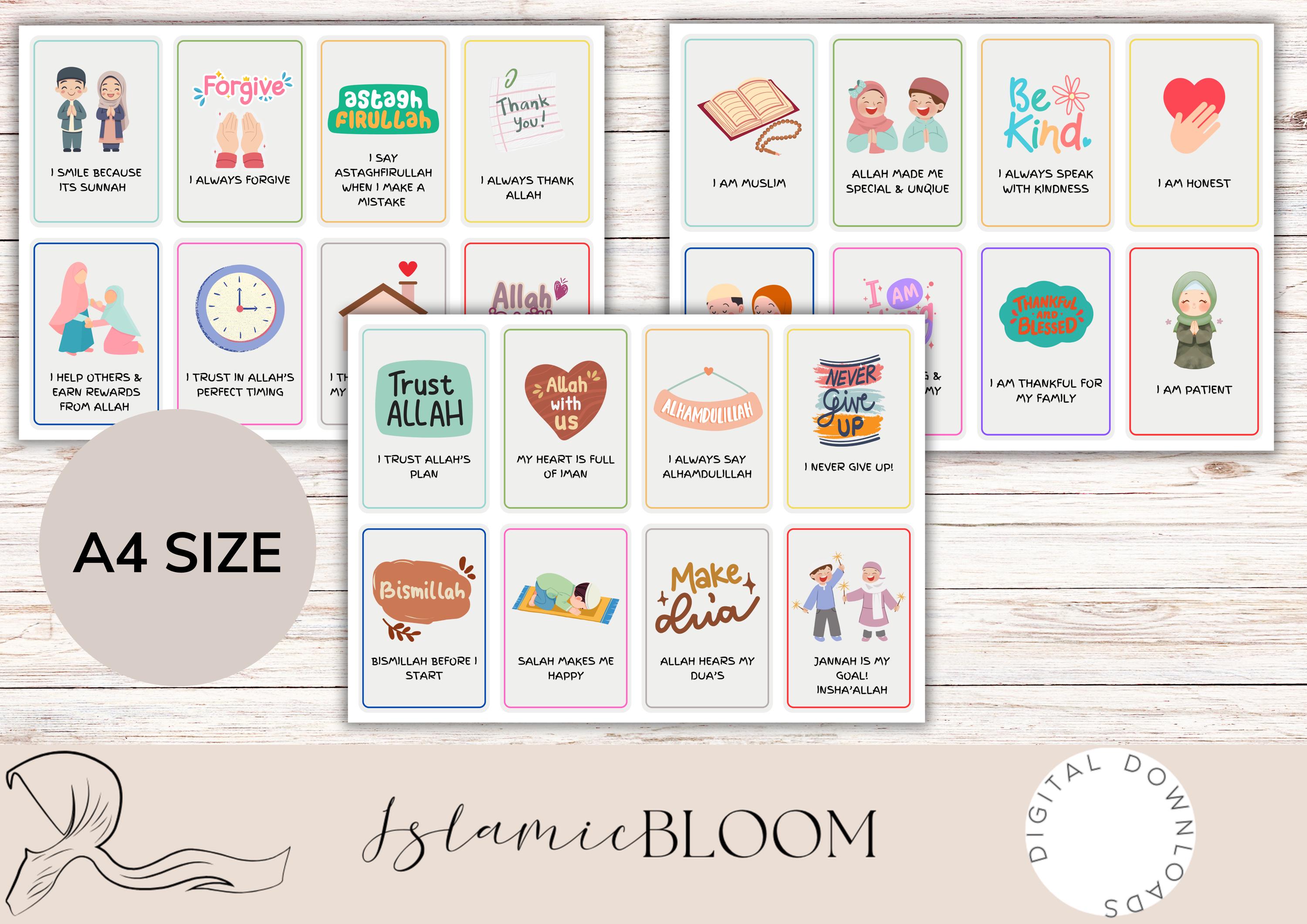 • Use as daily affirmations in homeschooling, bedtime routines, or Ramadan activities.