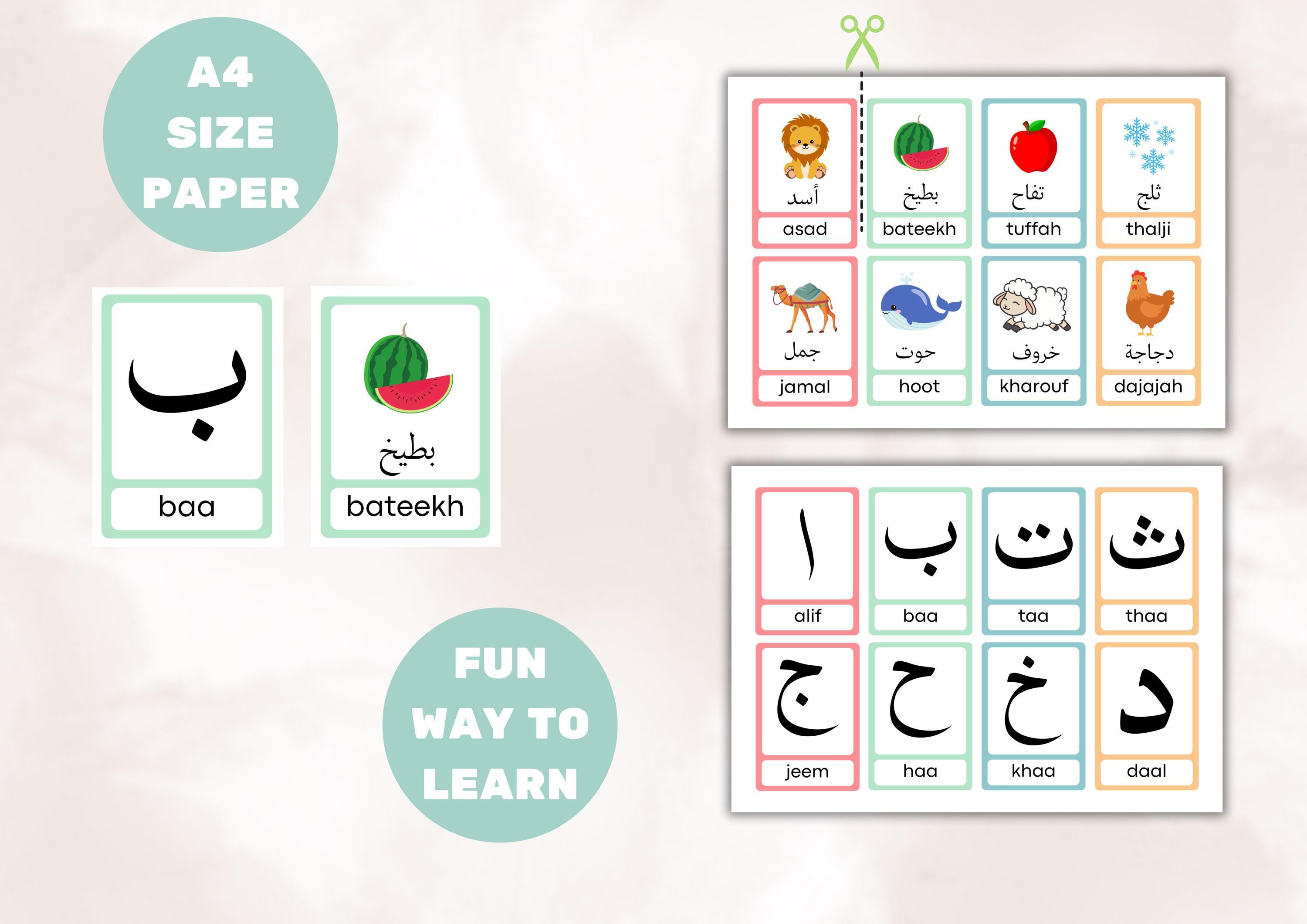 Make learning Arabic fun and engaging with this printable Arabic Alphabet Matching Card Game! Perfect for homeschooling, classrooms, and early learning, this game helps children recognize Arabic letters while associating them with colorful images and words.