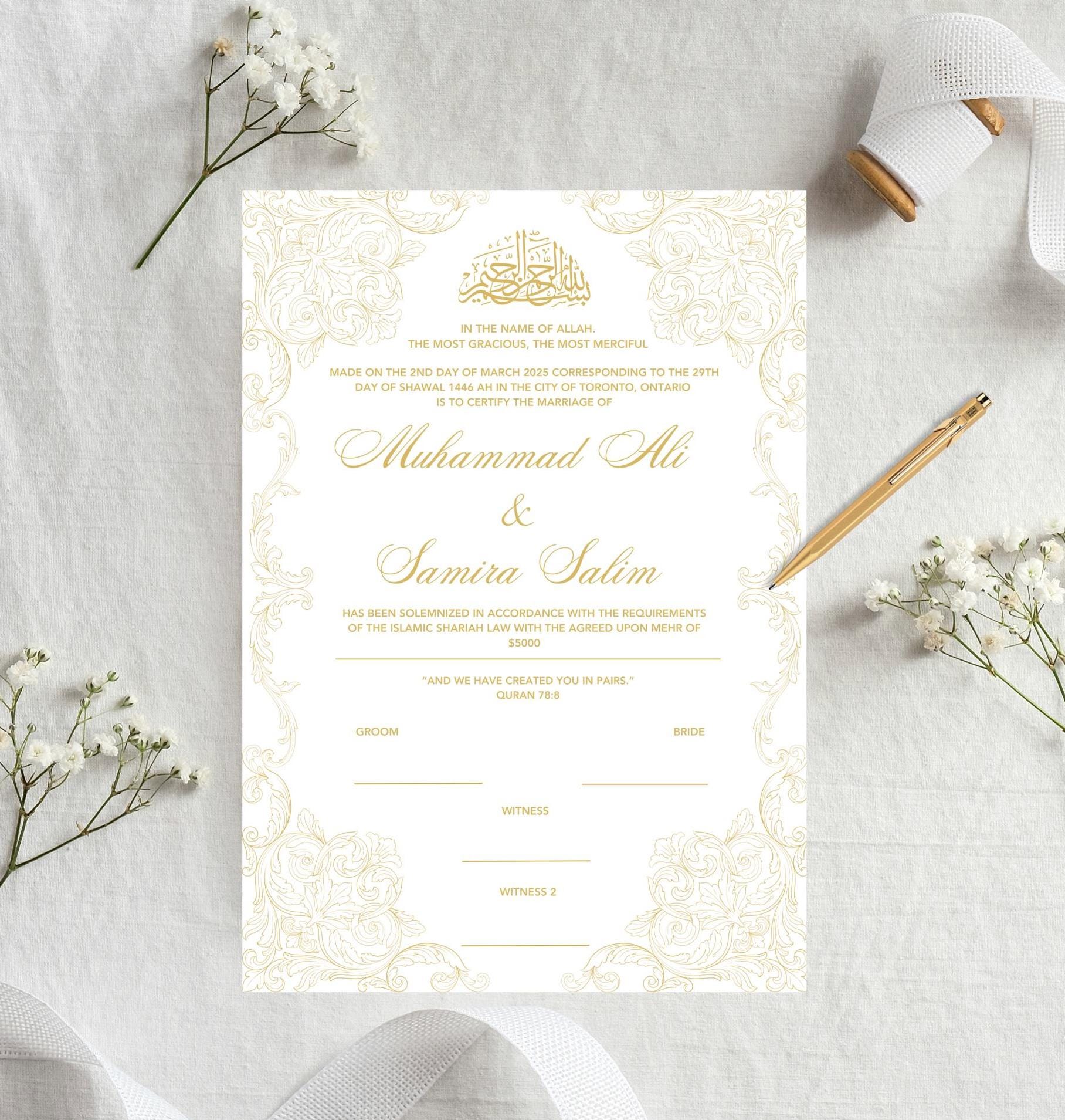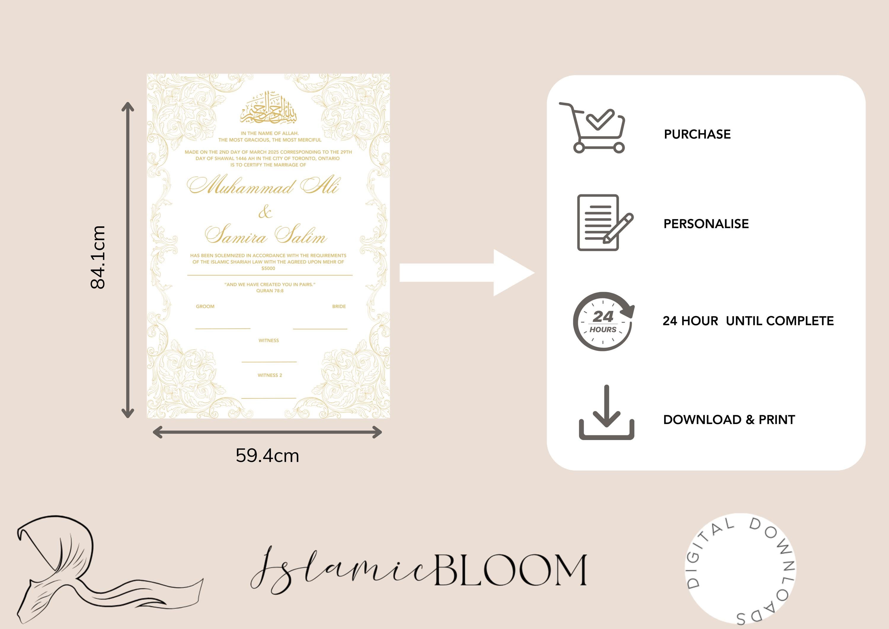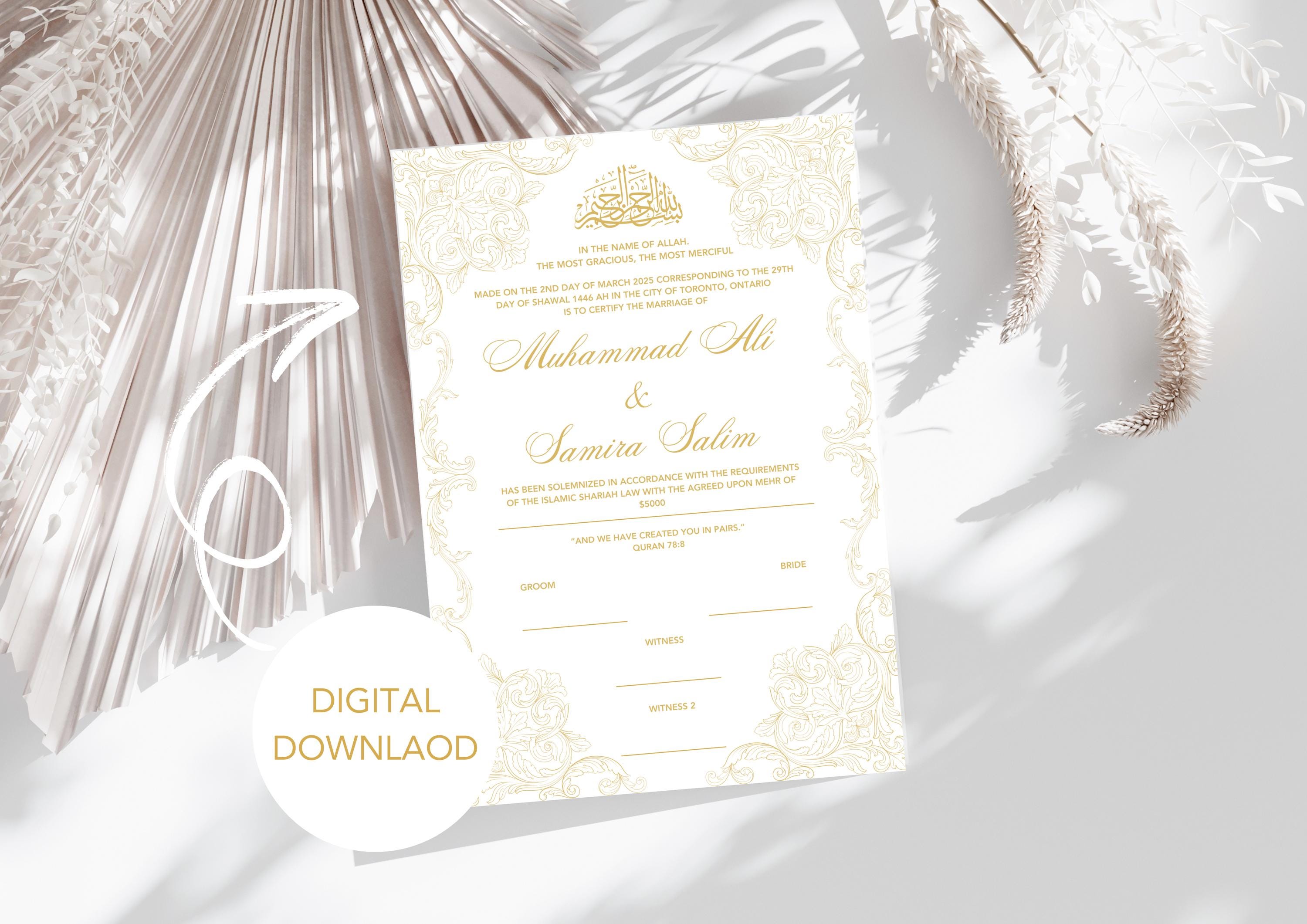 Perfect for Islamic weddings, Nikah ceremonies, Muslim couples, and Halal marriages. Download, print, and cherish this meaningful document forever!