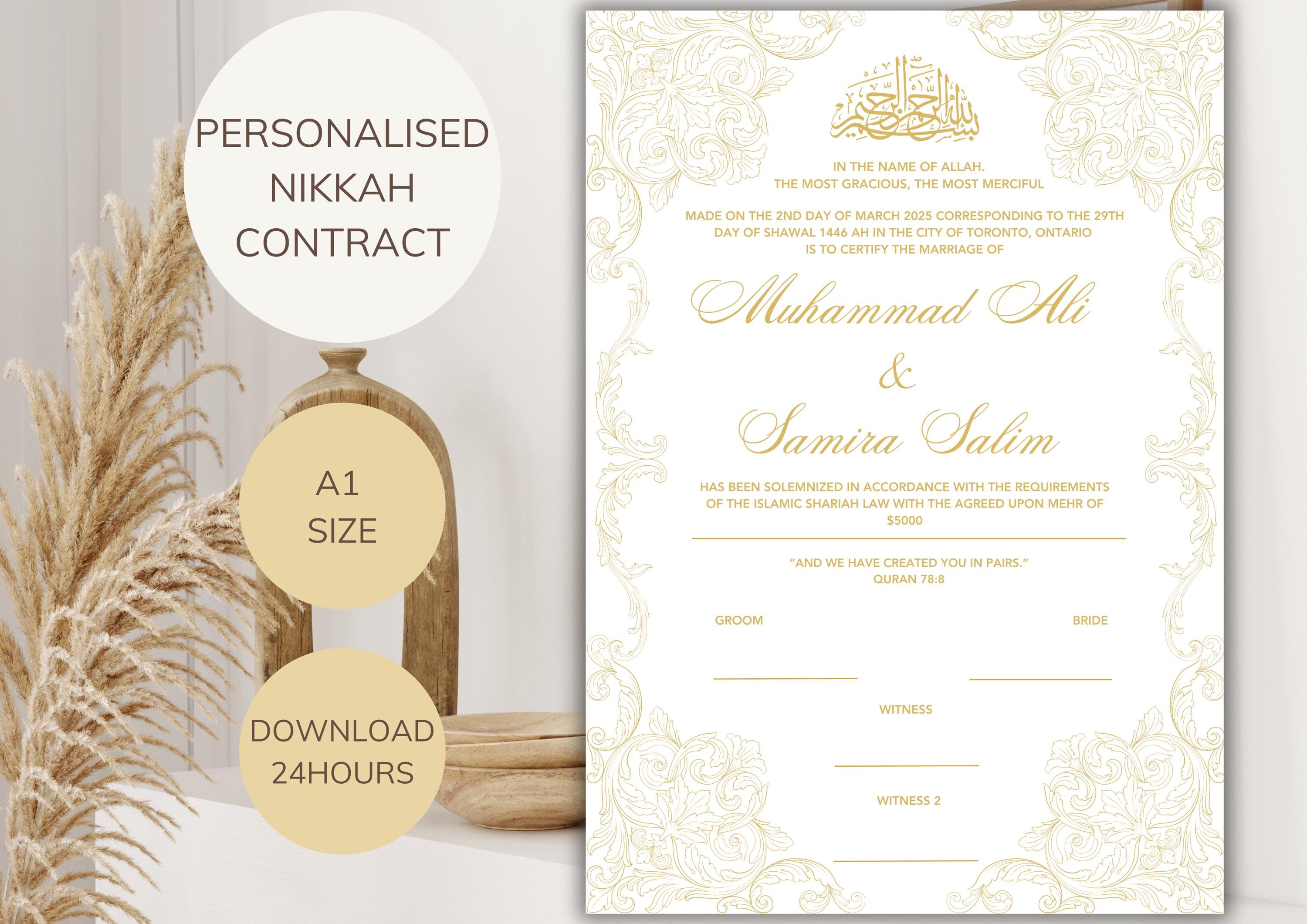Personalized Islamic Nikkah Contract | Minimalist Wedding Certificate (Digital PDF)