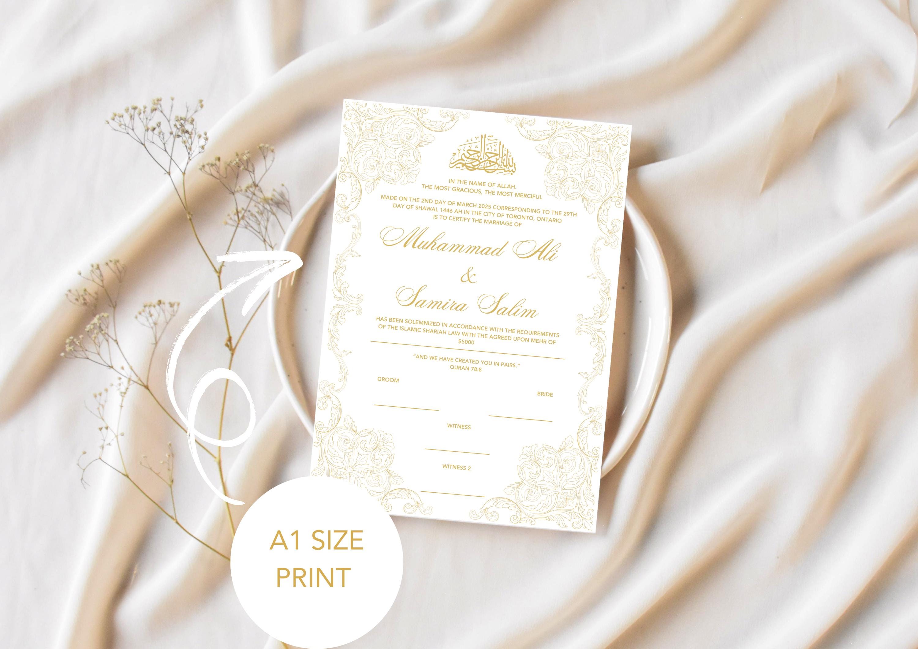 Celebrate your sacred union with this beautifully designed Islamic Marriage Certificate (Nikah )– a perfect keepsake for Muslim weddings. This digital download features an elegant, modern design with Quranic verses, customizable with your names and wedding details. Ideal as a Nikah certificate, a thoughtful Islamic wedding gift, or a stunning keepsake for newlyweds.