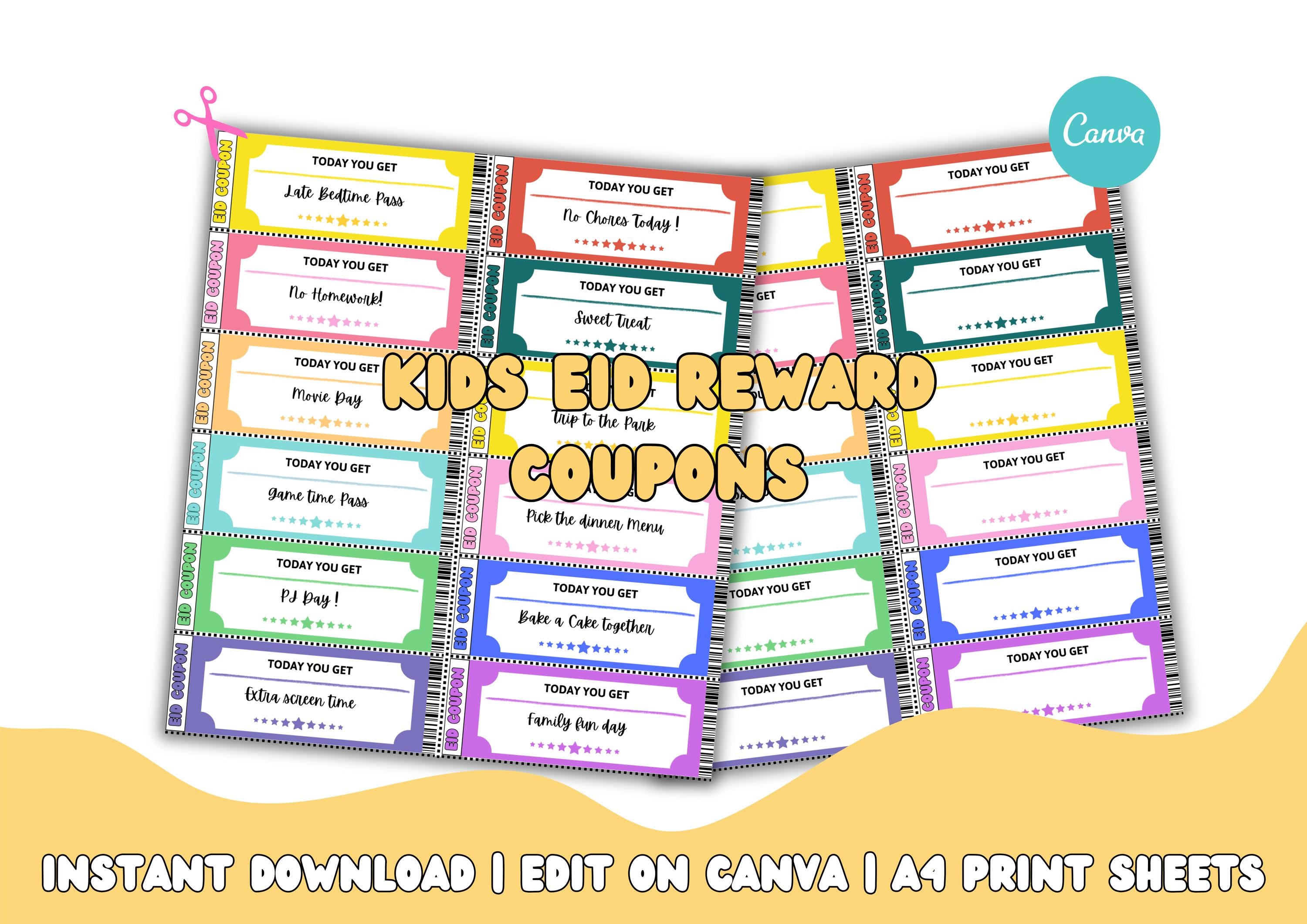 Make Eid extra special for your little ones with these fun and colorful Kids Eid Reward Coupons!