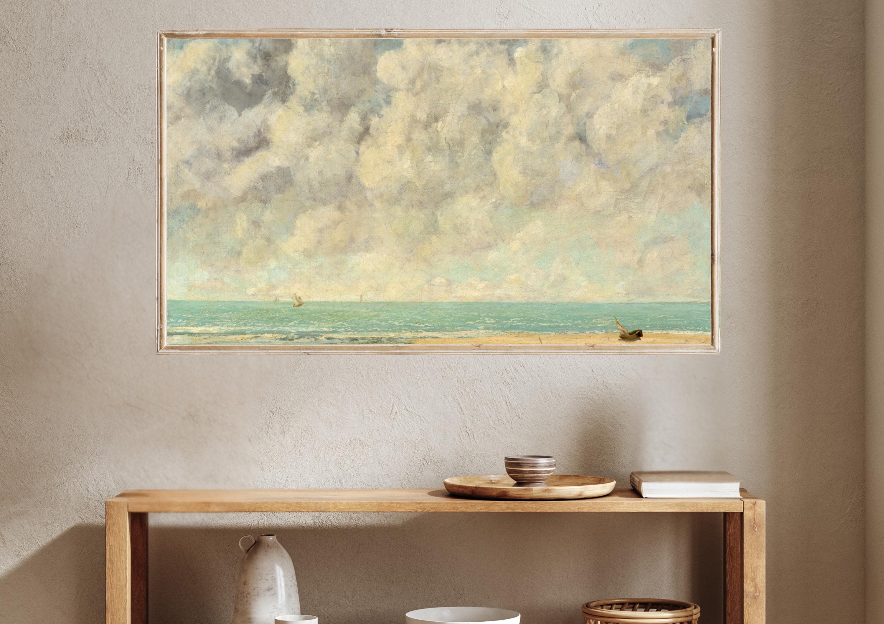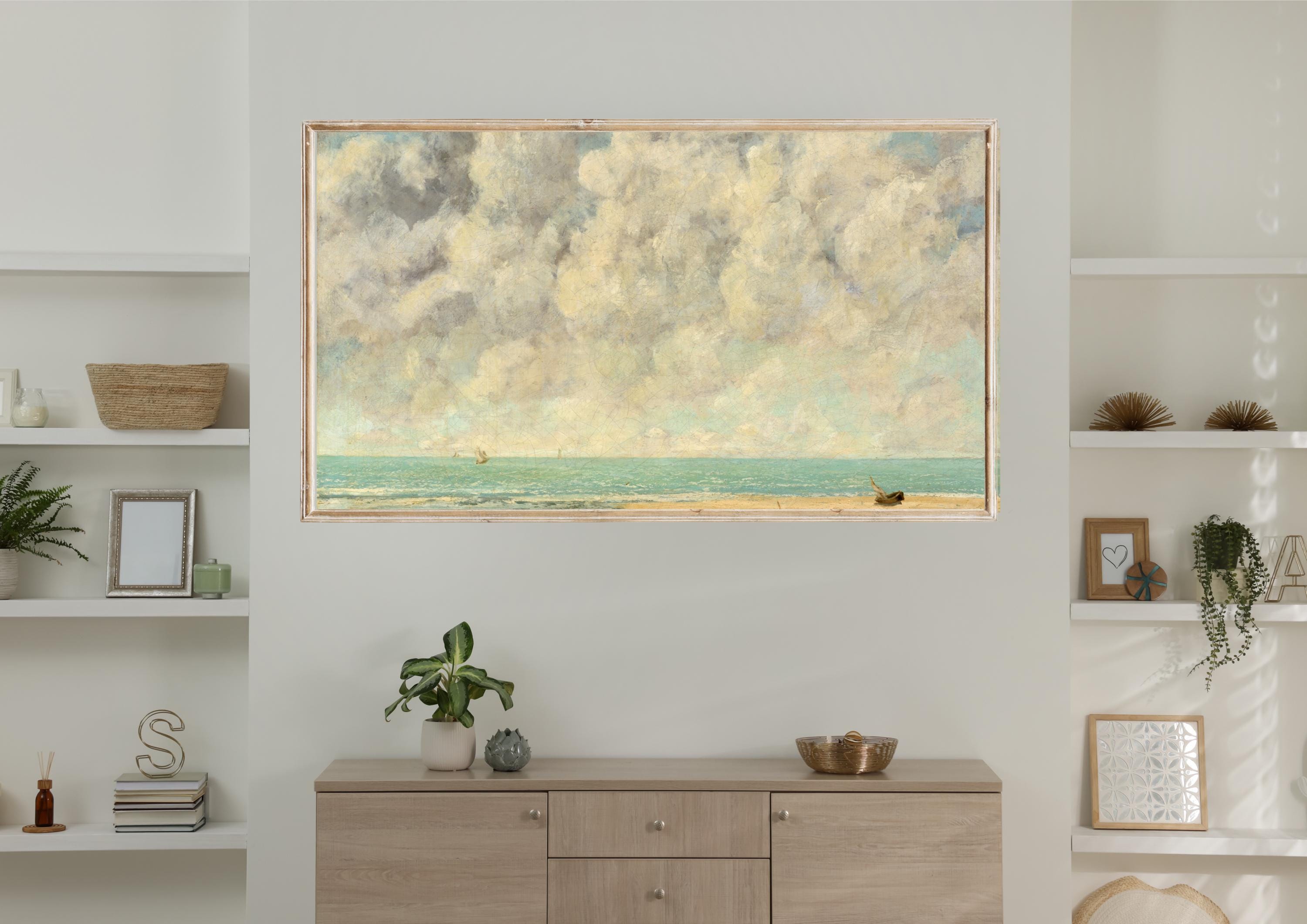 Download this vintage seascape Samsung Frame TV art to transform your screen into a timeless coastal masterpiece. This high-resolution digital download features a serene ocean view with soft clouds, perfect for creating a calm and elegant ambiance in your home. Ideal for beach house decor, coastal interiors, and digital art lovers, this artwork is optimized for Samsung Frame TVs and digital displays. Instantly enhance your space with this classic ocean painting—download and display today!