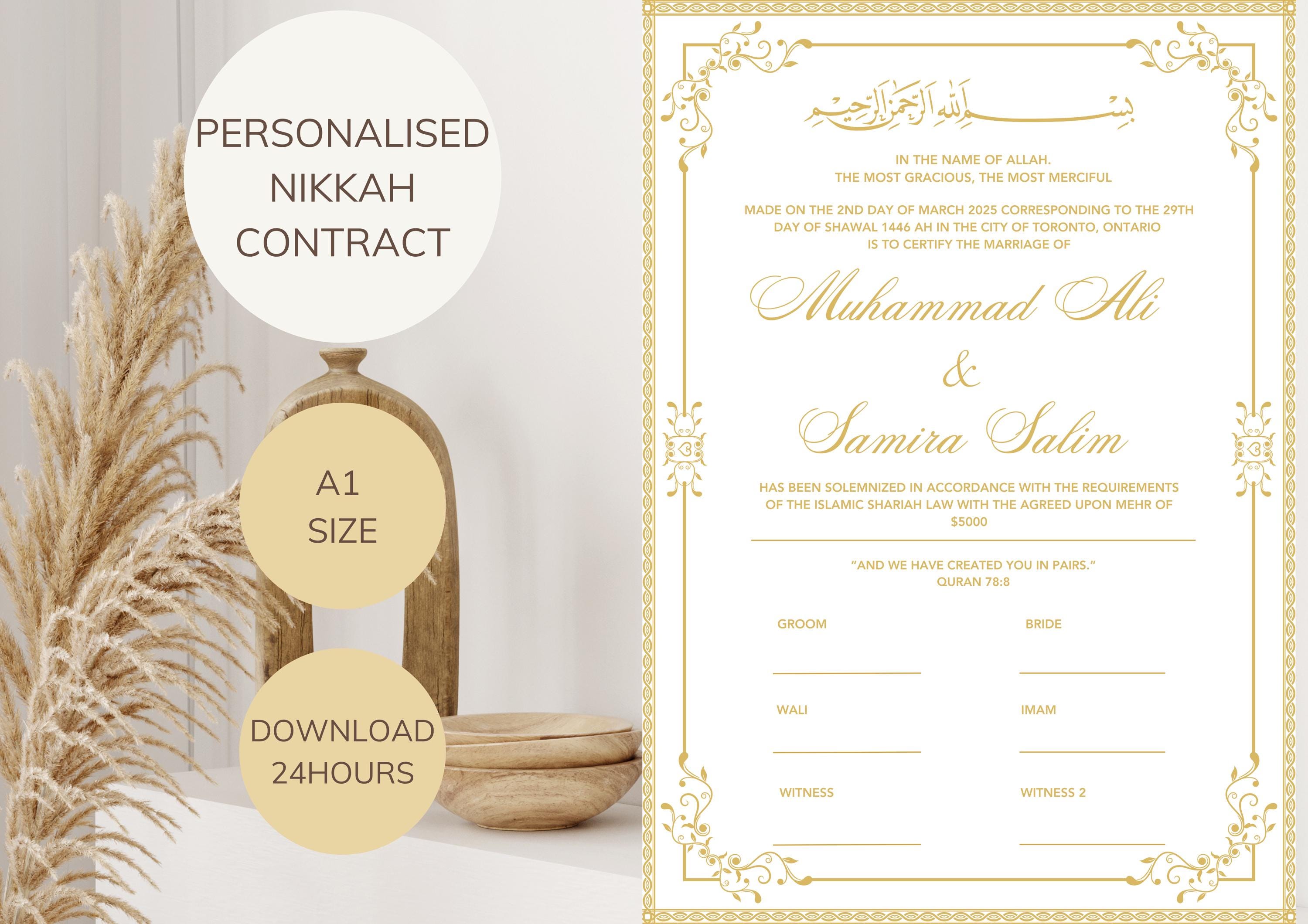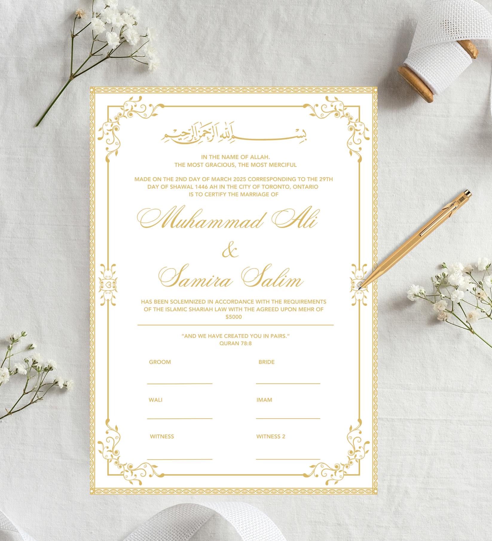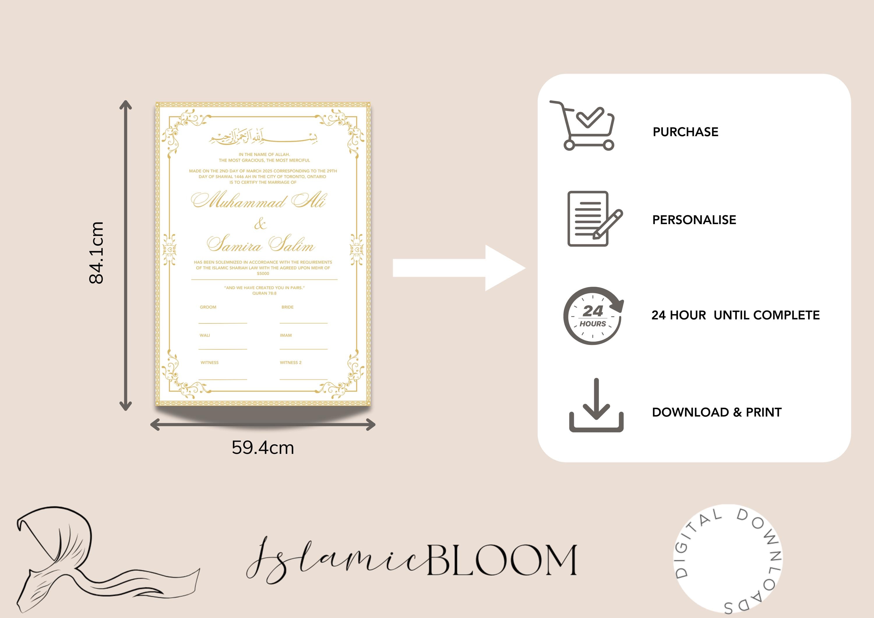 Personalized Nikkah Certificate | Islamic Marriage Contract (Digital Download)