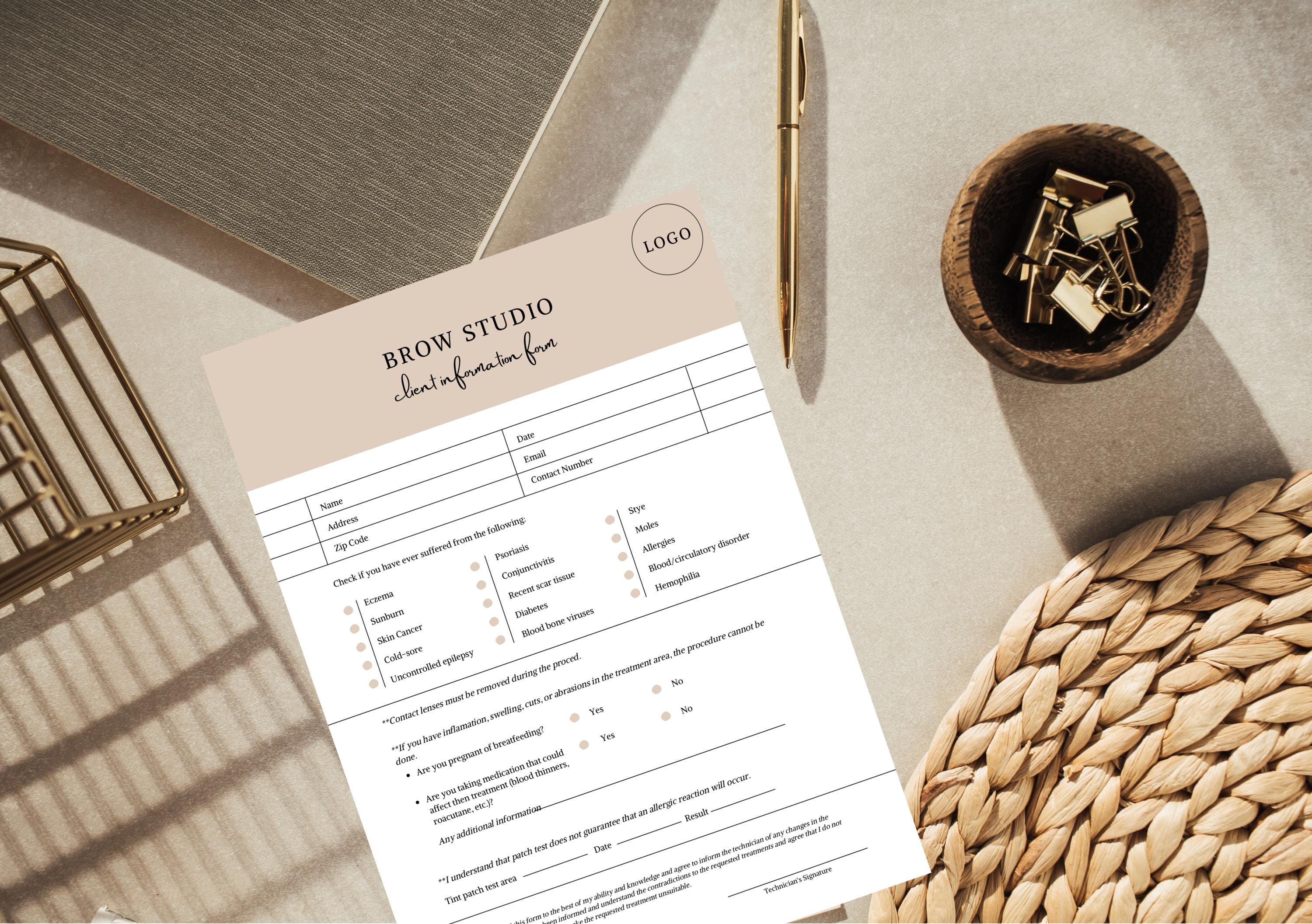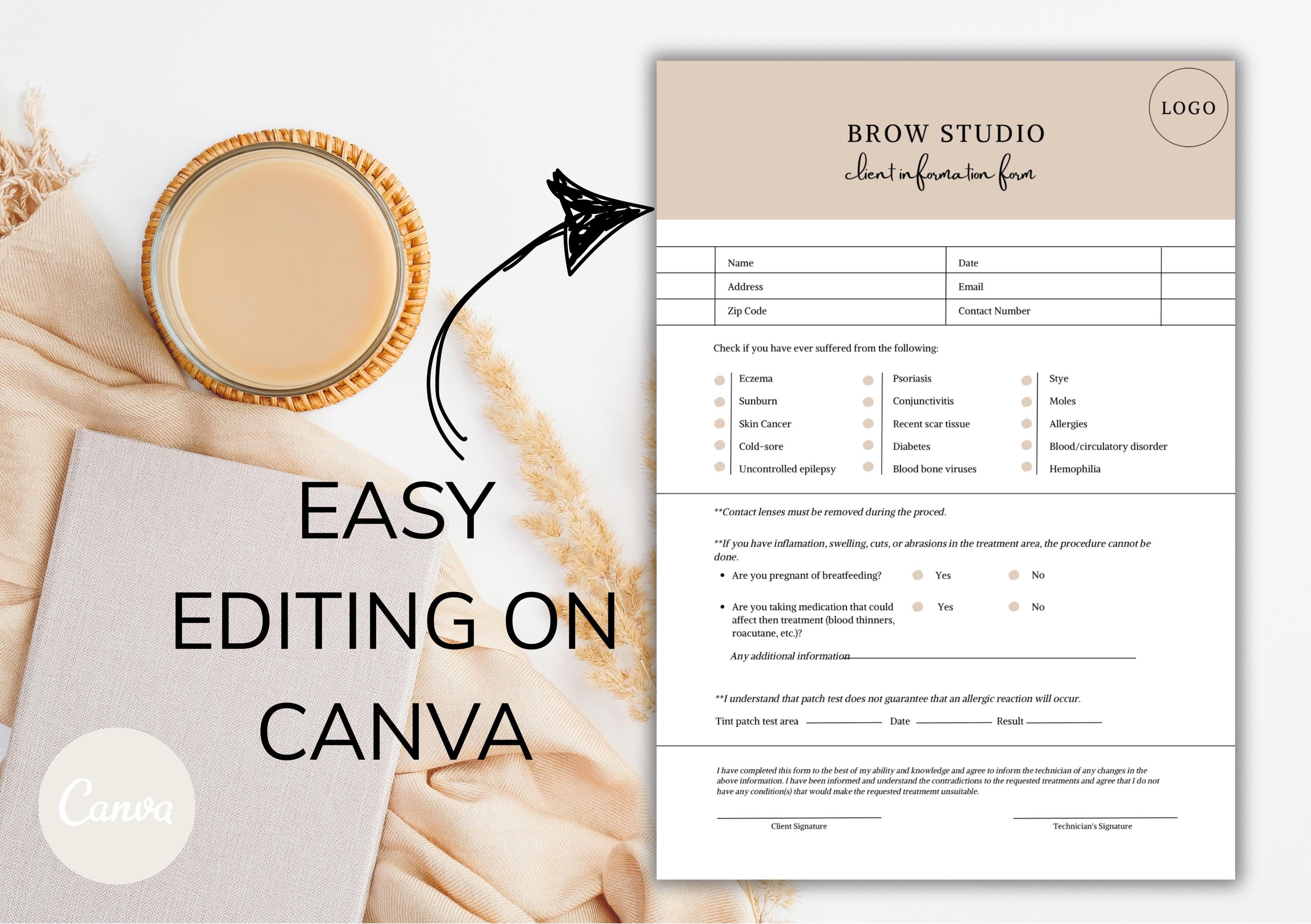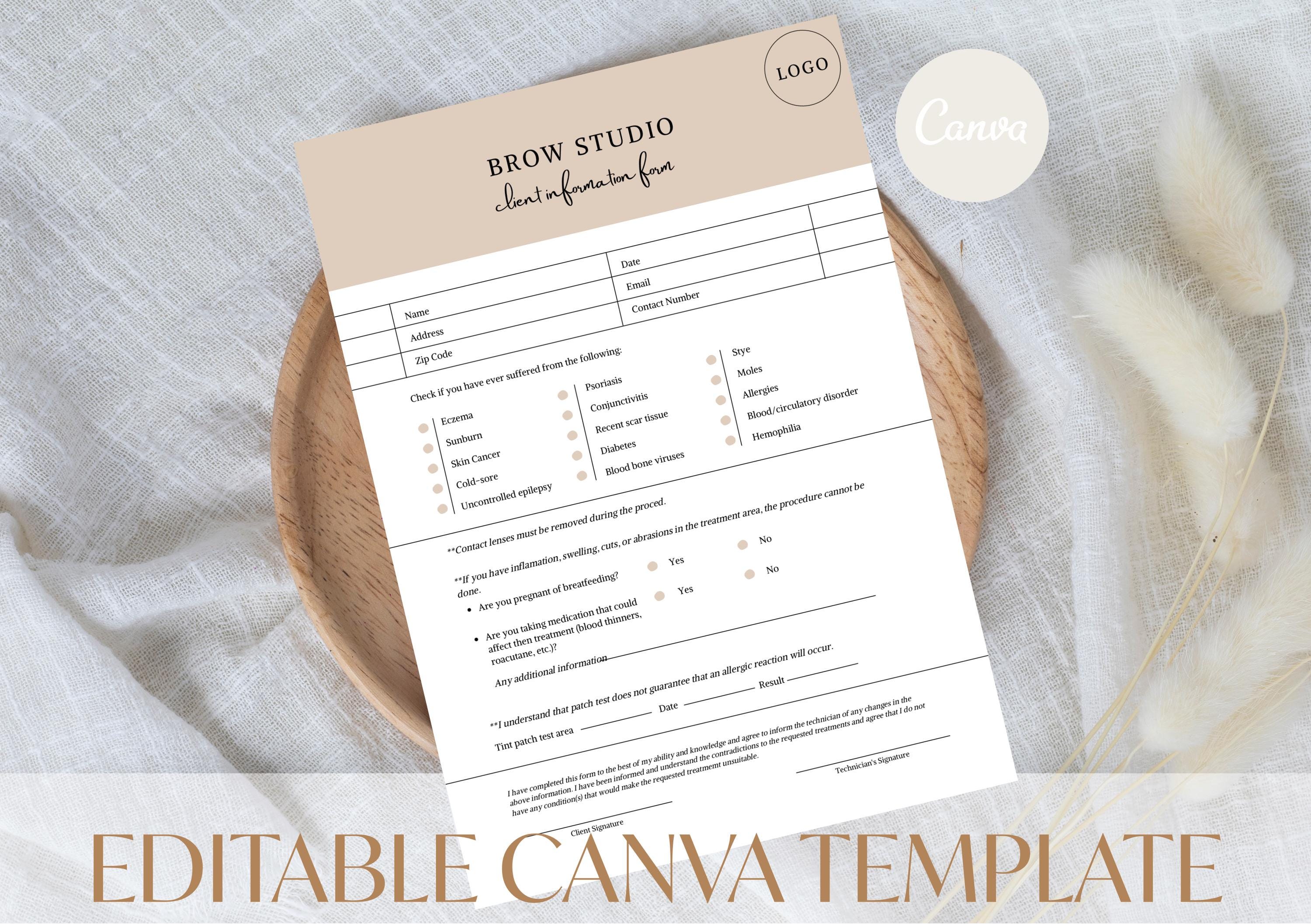 Editable Brow Studio Client Consultation Form | Lash & Beauty Salon Intake (Canva Template)