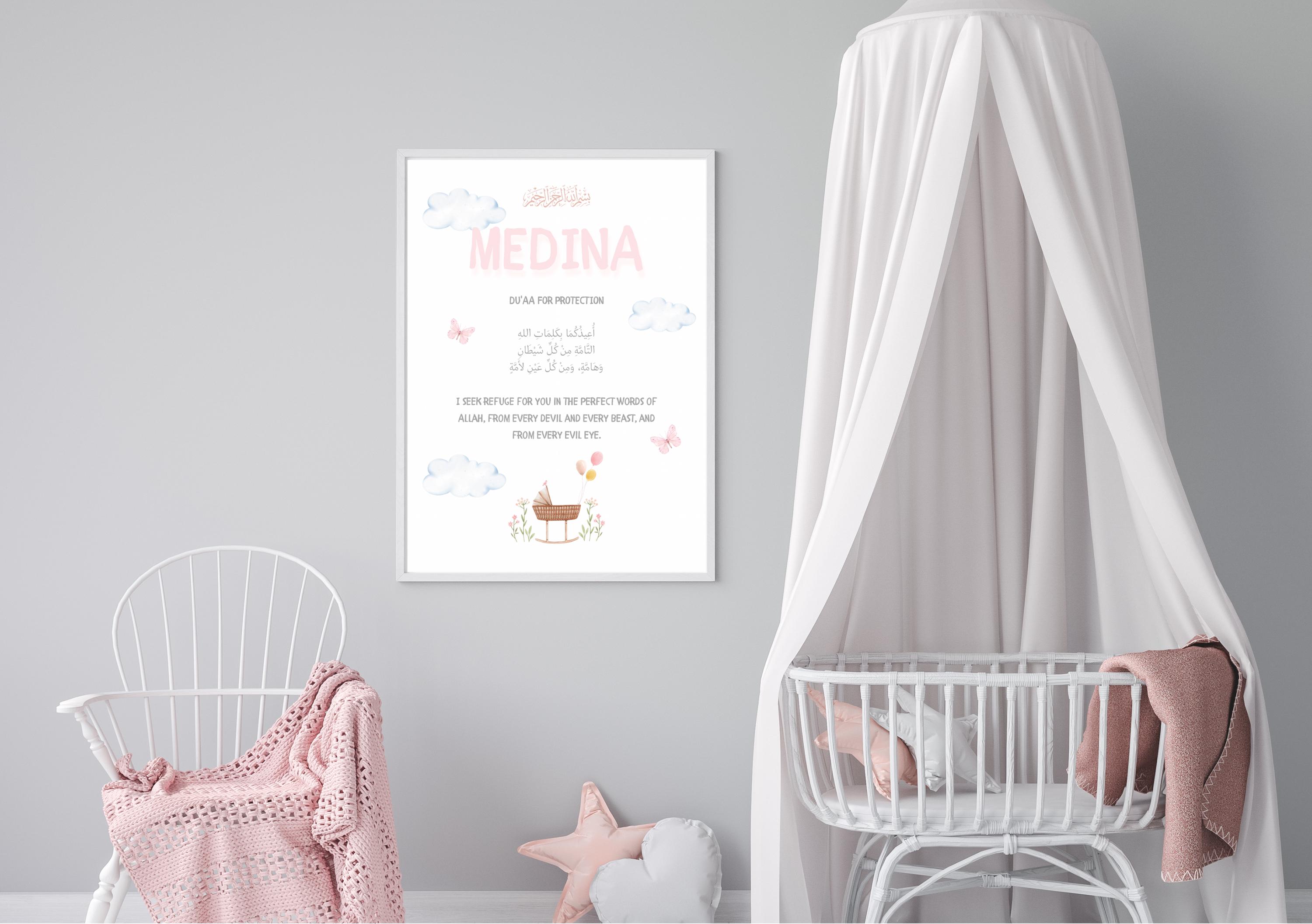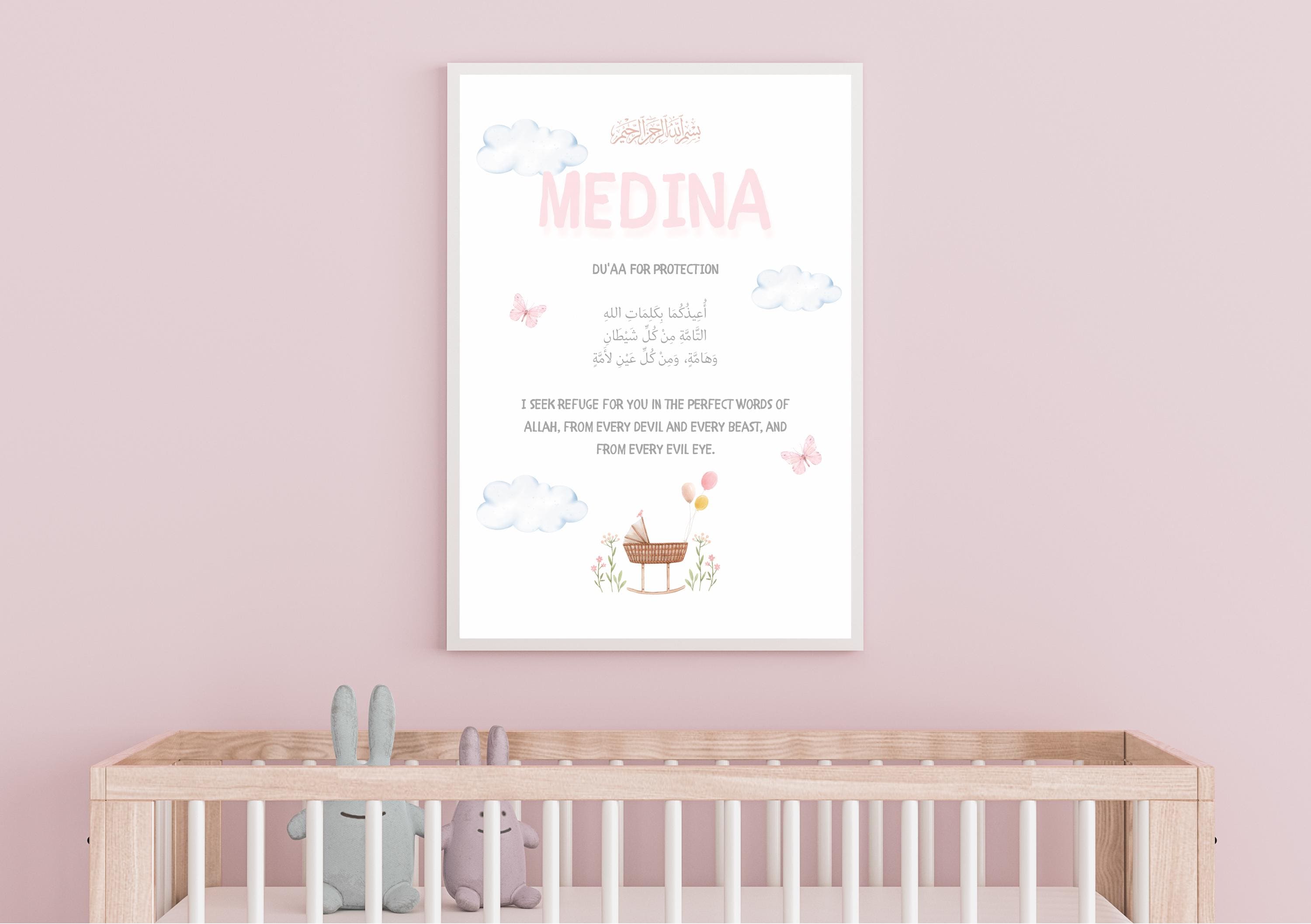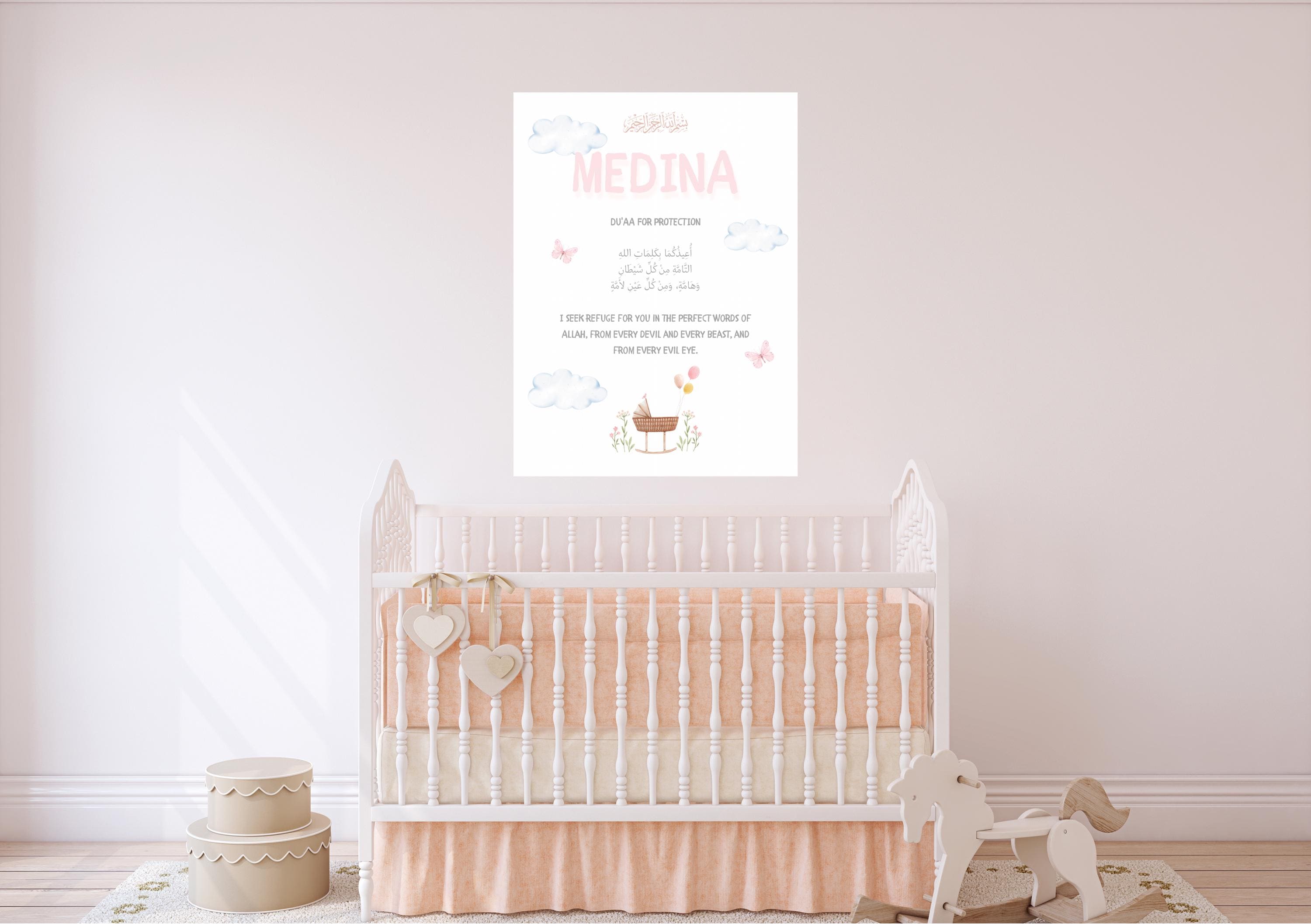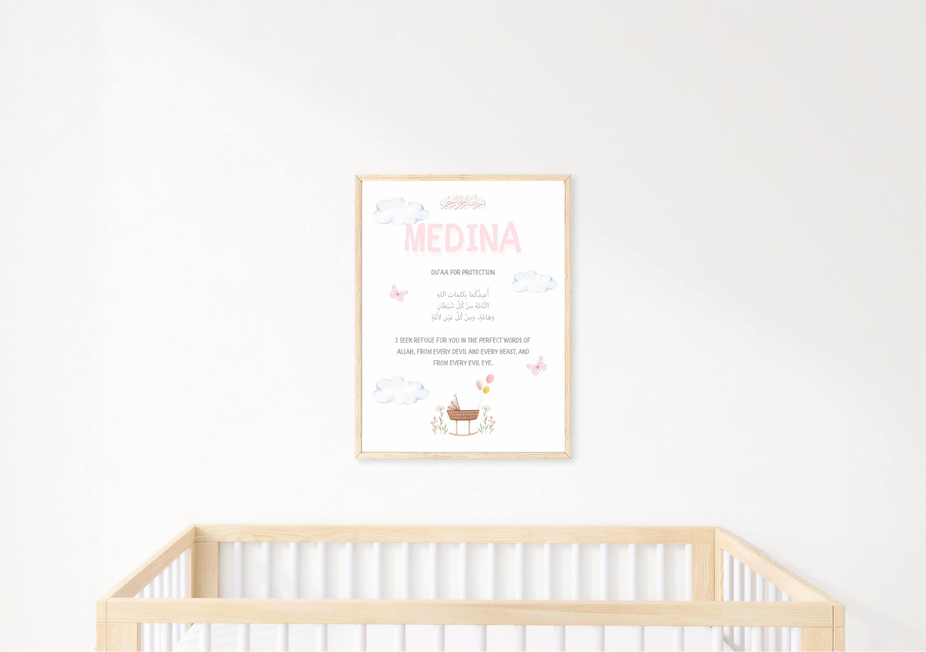 Personalized Islamic Nursery Print | Protection Dua, Muslim Baby Girl (Digital Download)