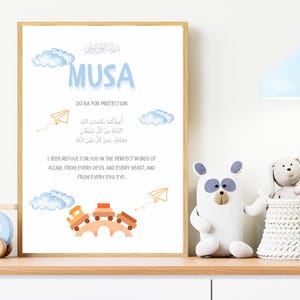 Create a peaceful and faith-filled atmosphere in your child’s room with this custom Islamic wall art featuring their name and a protective dua. This beautifully designed A4 printable is perfect for nursery decor, Islamic baby gifts, or a thoughtful newborn present.