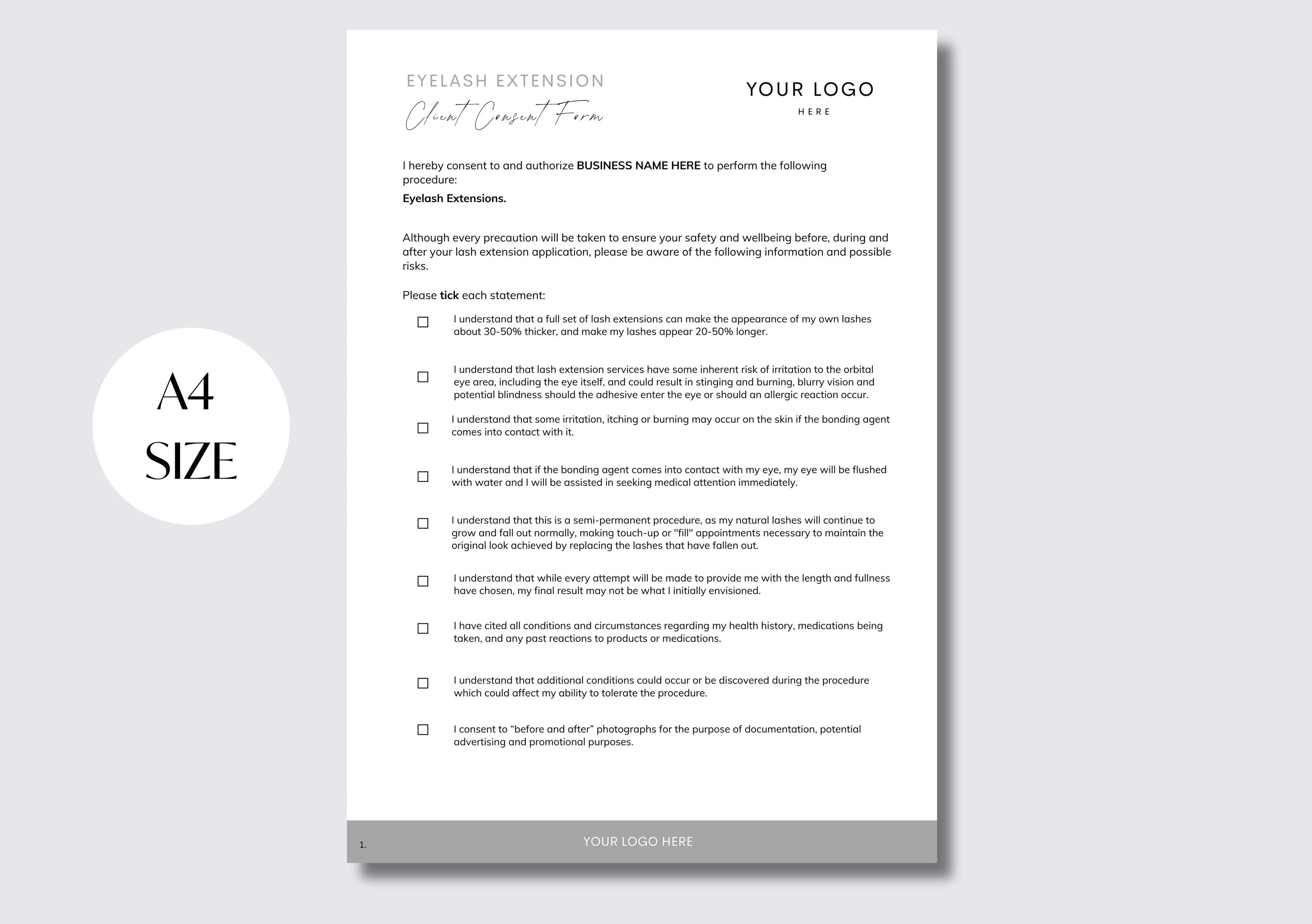 Keep your client paperwork clean and professional with this minimalist Editable Consent Form Bundle – ideal for lash techs, estheticians, and beauty professionals.
