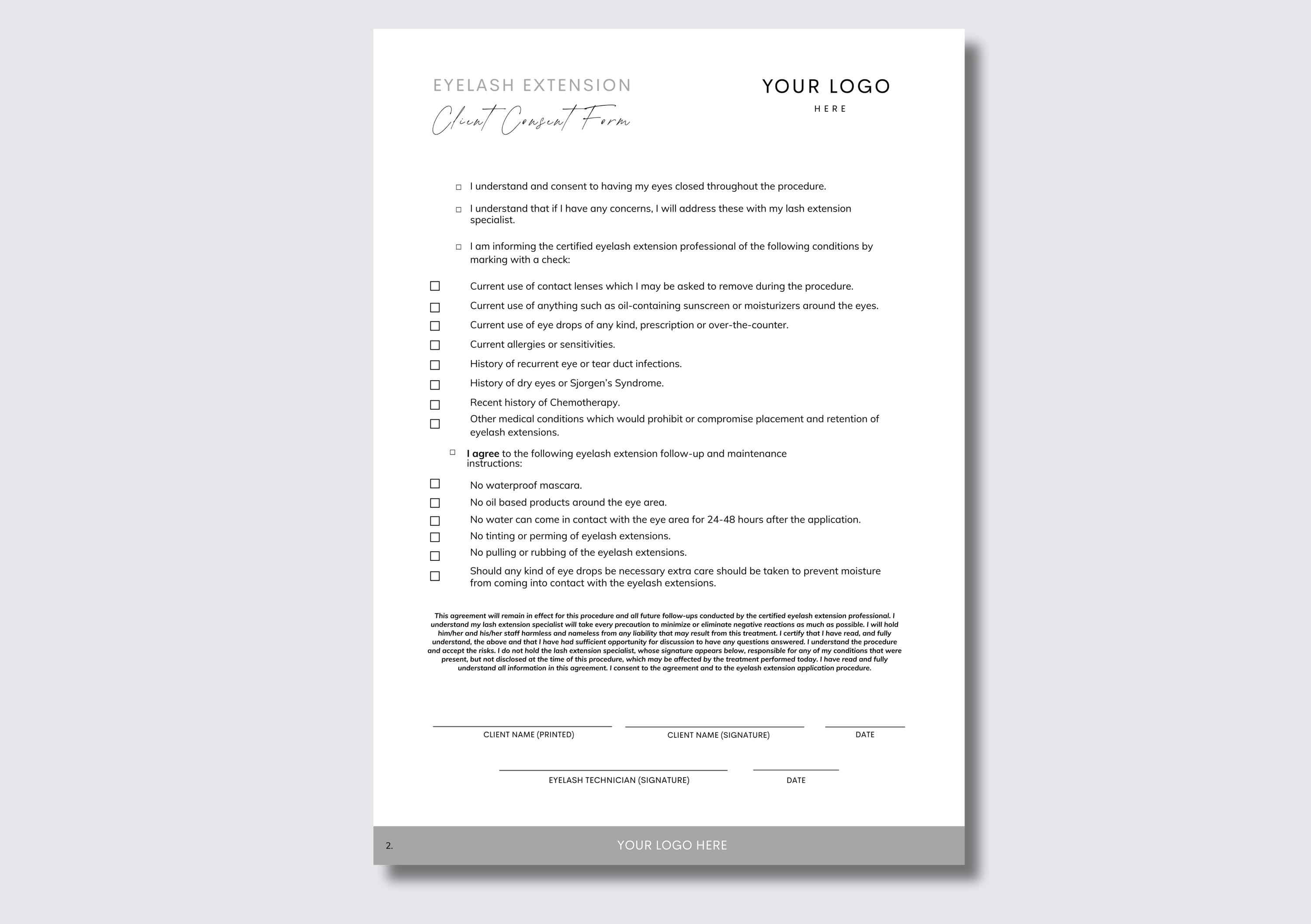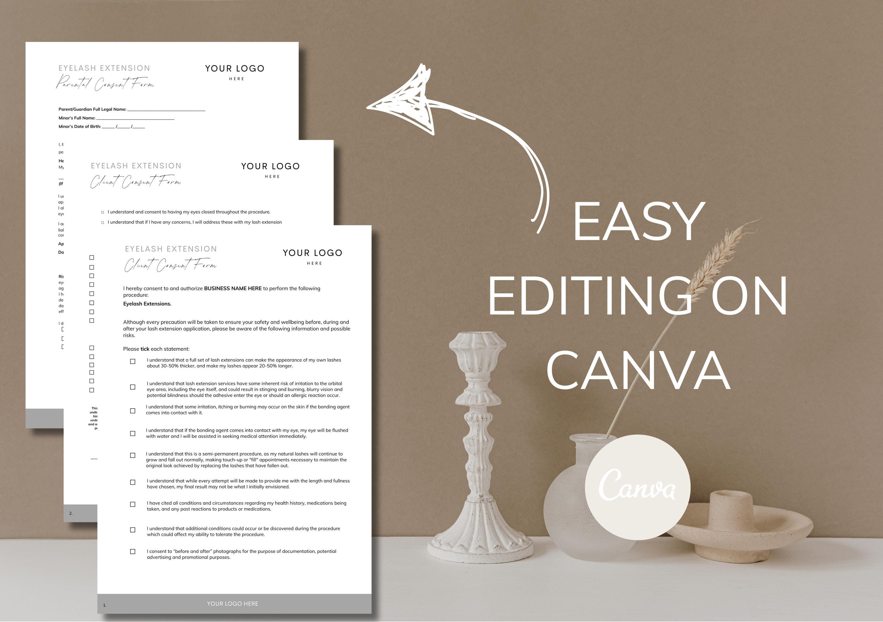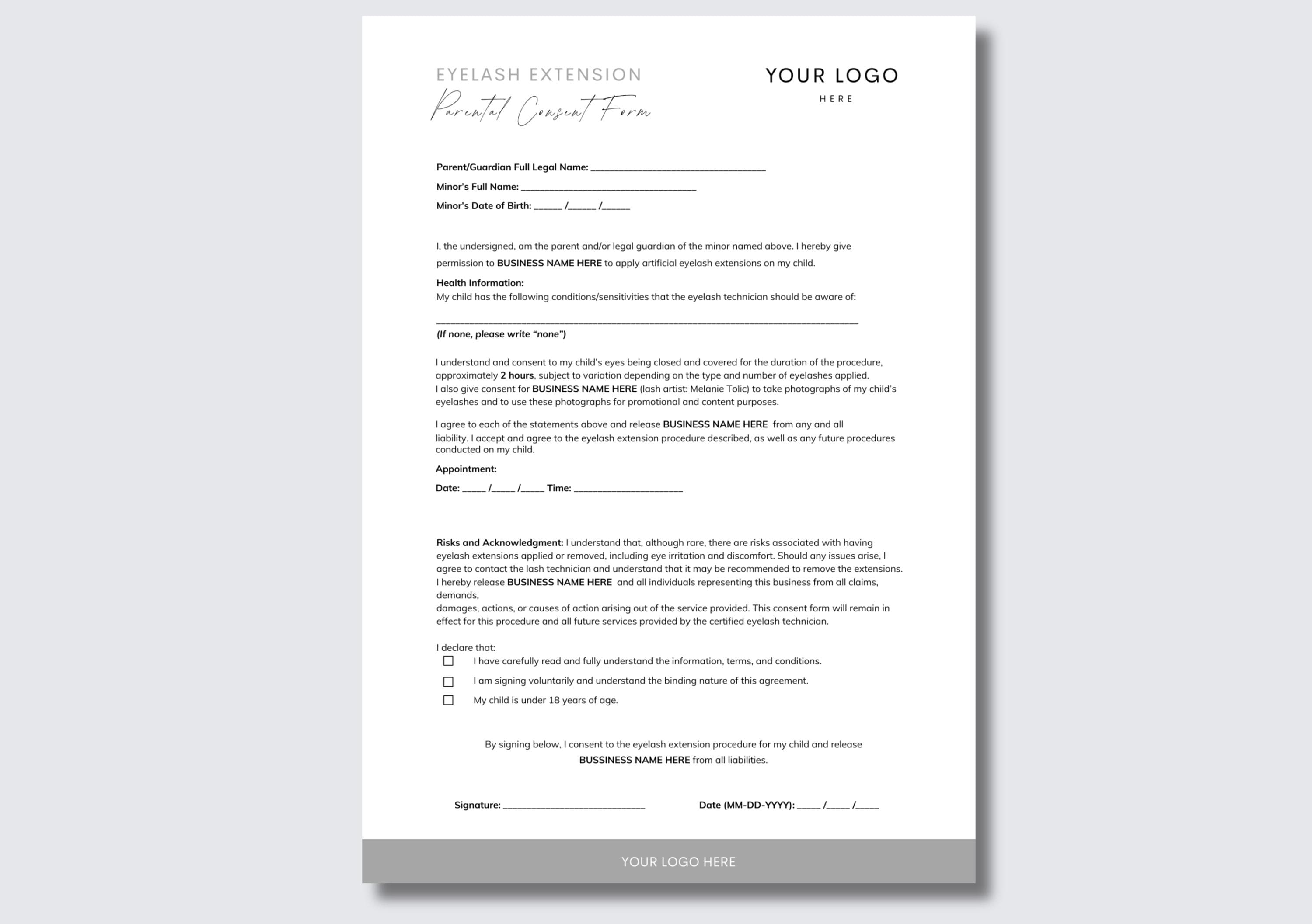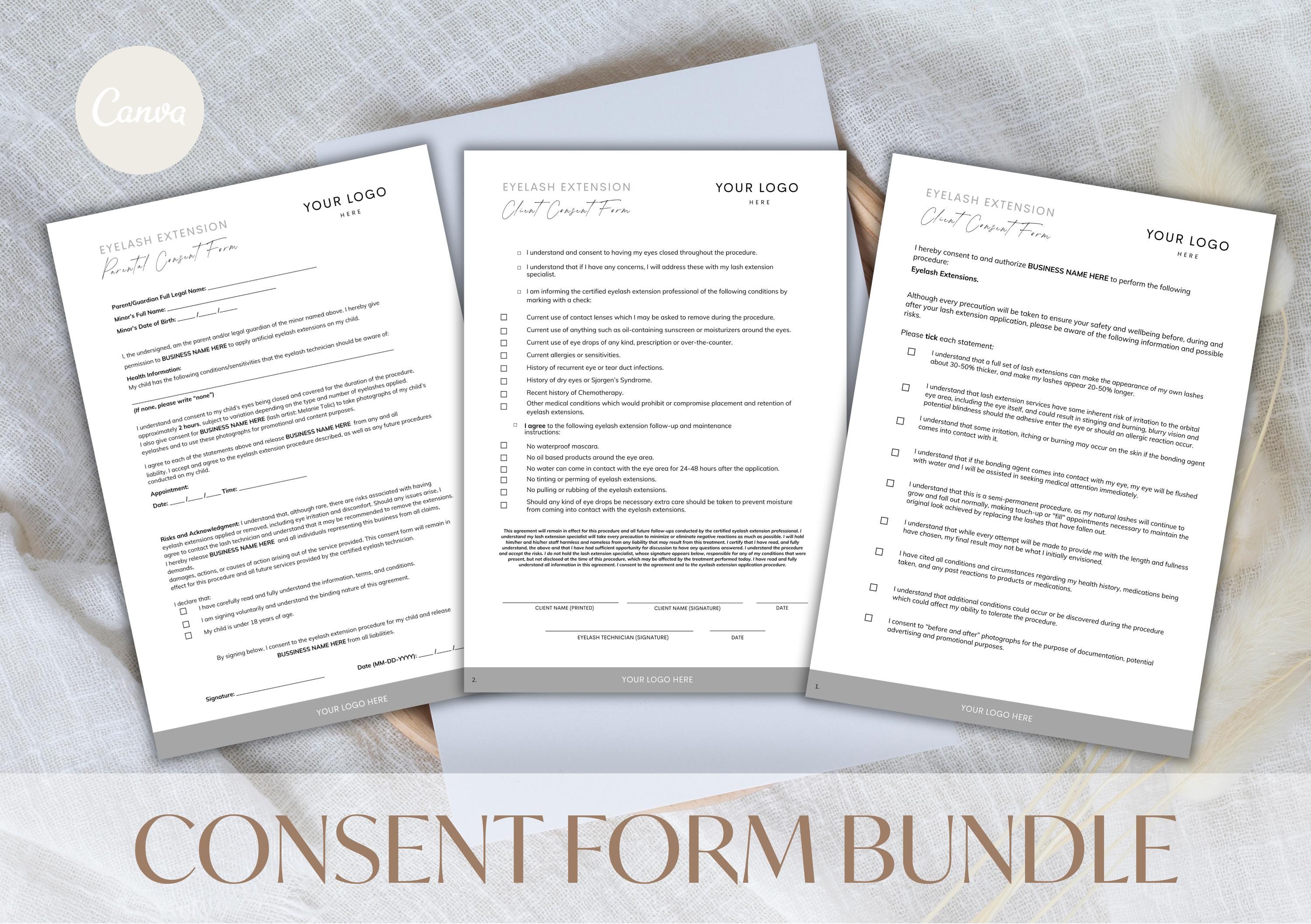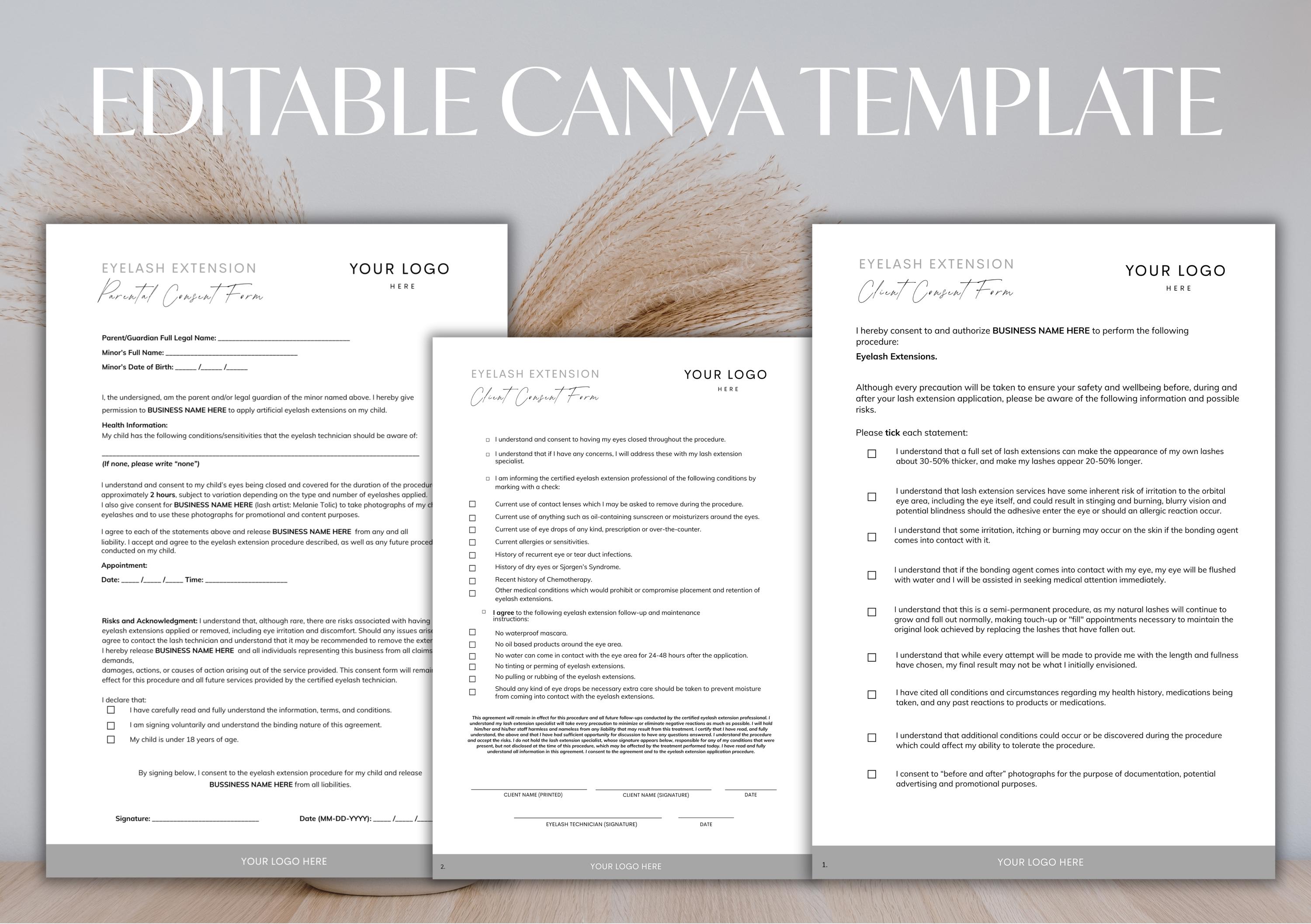 Lash Tech Consent Form Bundle: Client & Parent Forms, Editable Canva Template (Digital Download)