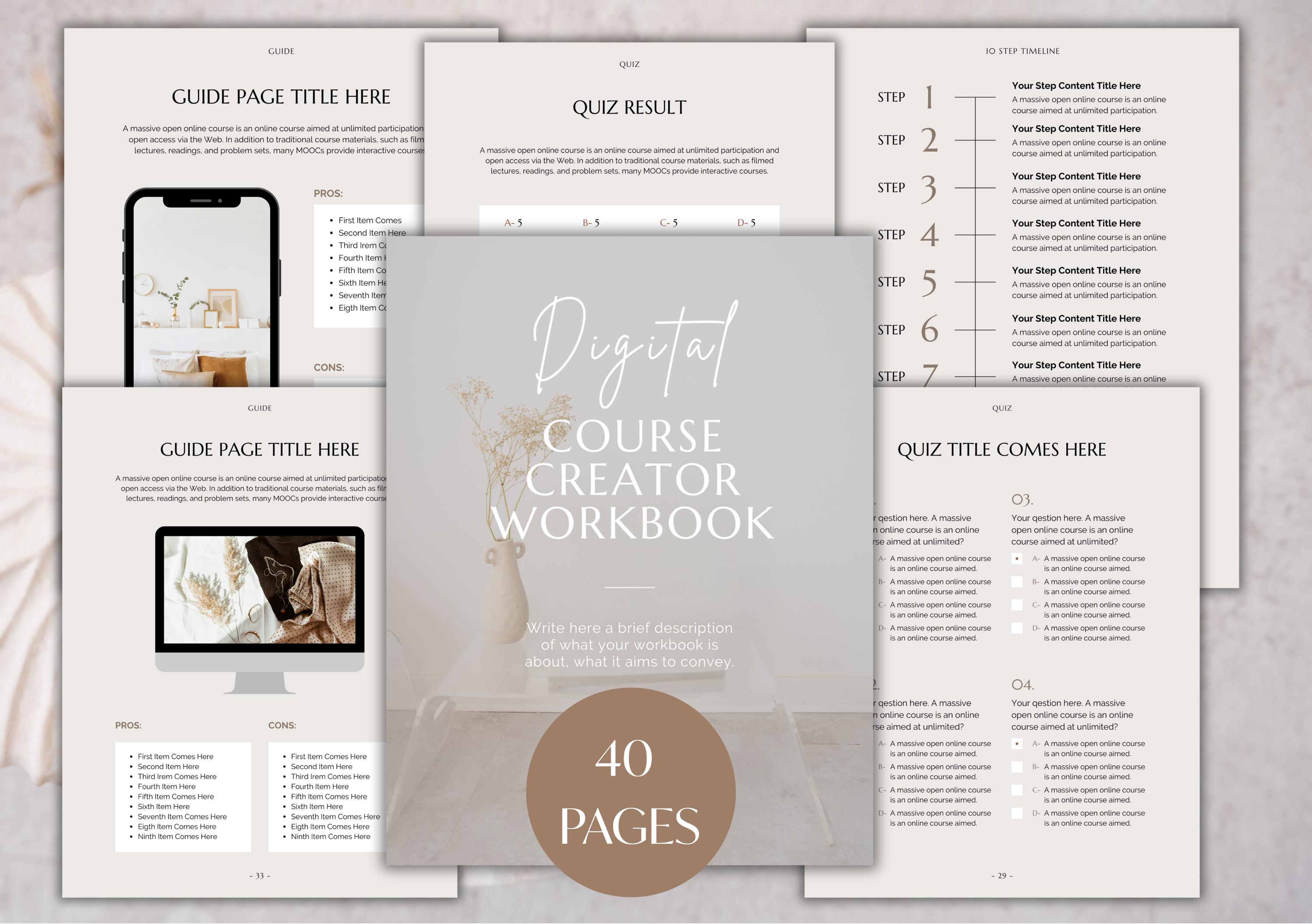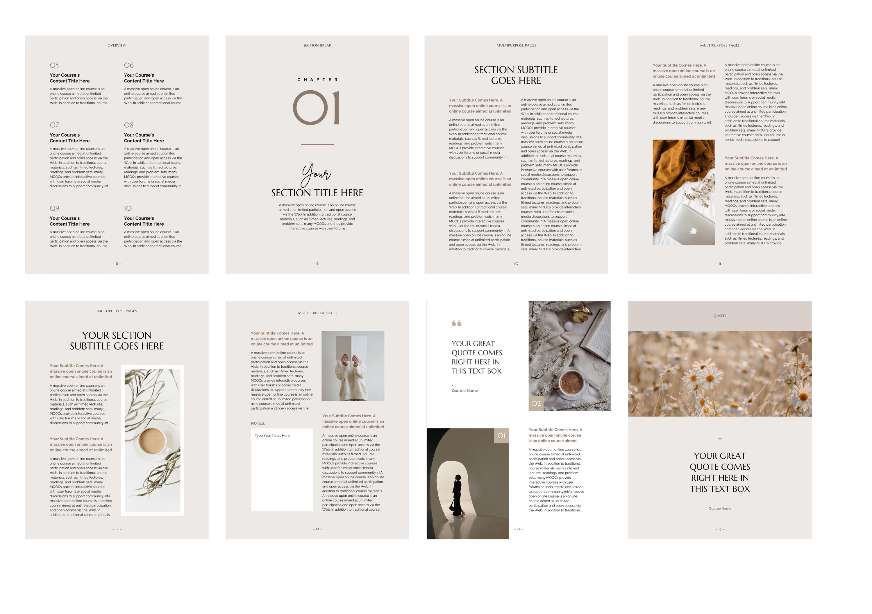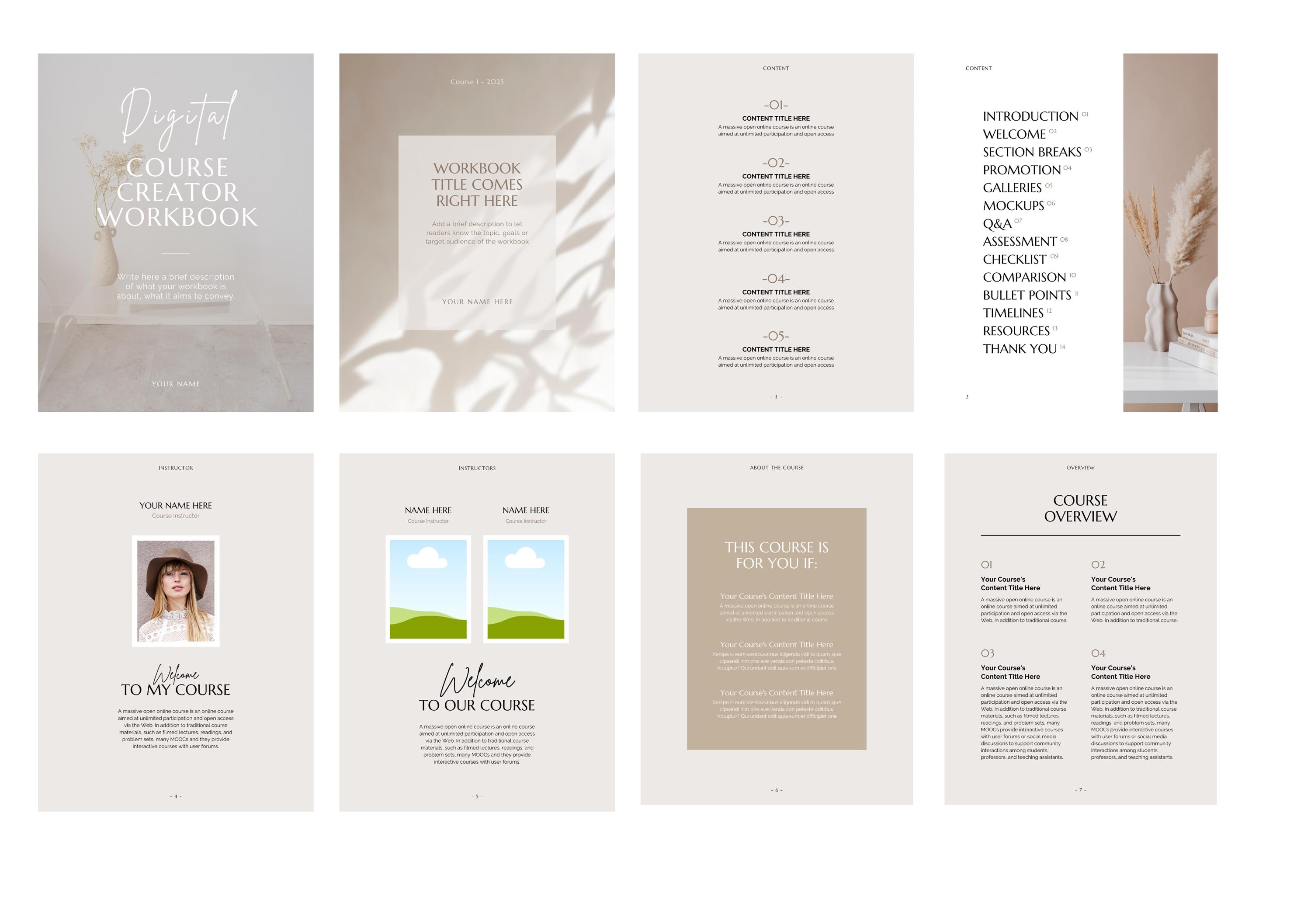 Crafted in a soft beige palette and timeless typeface, each page is thoughtfully designed to bring clarity, flow, and visual balance to your course materials.