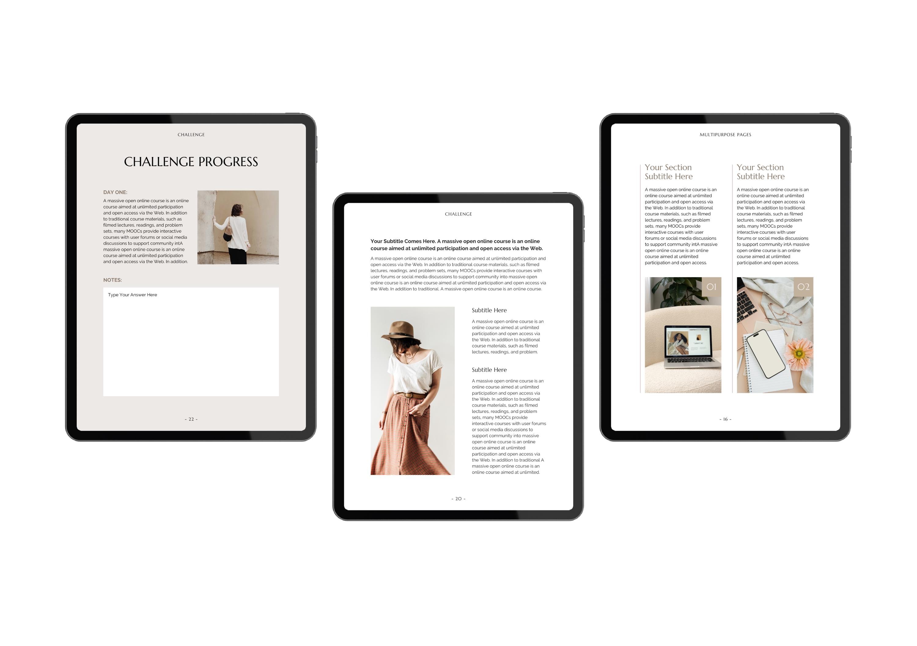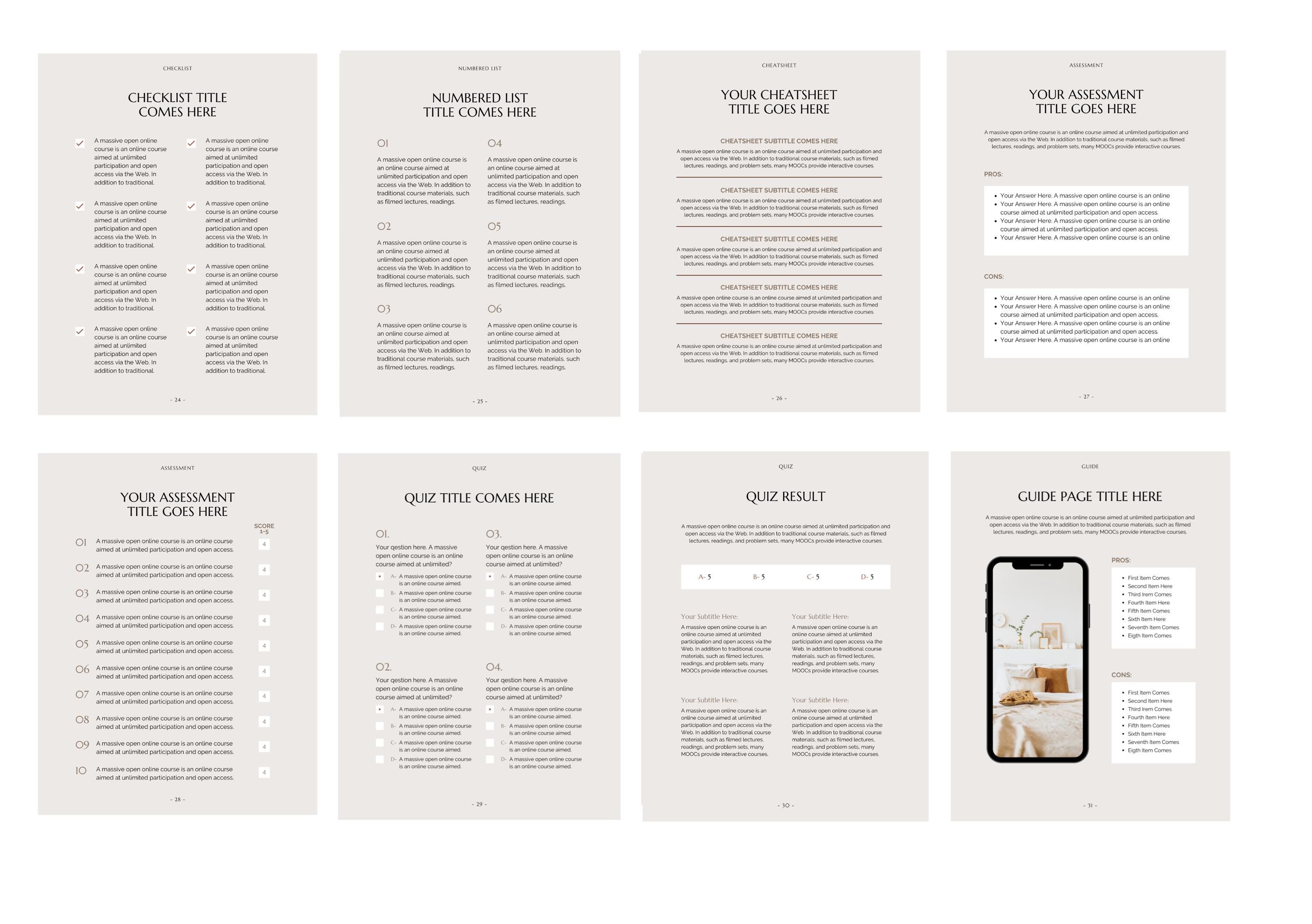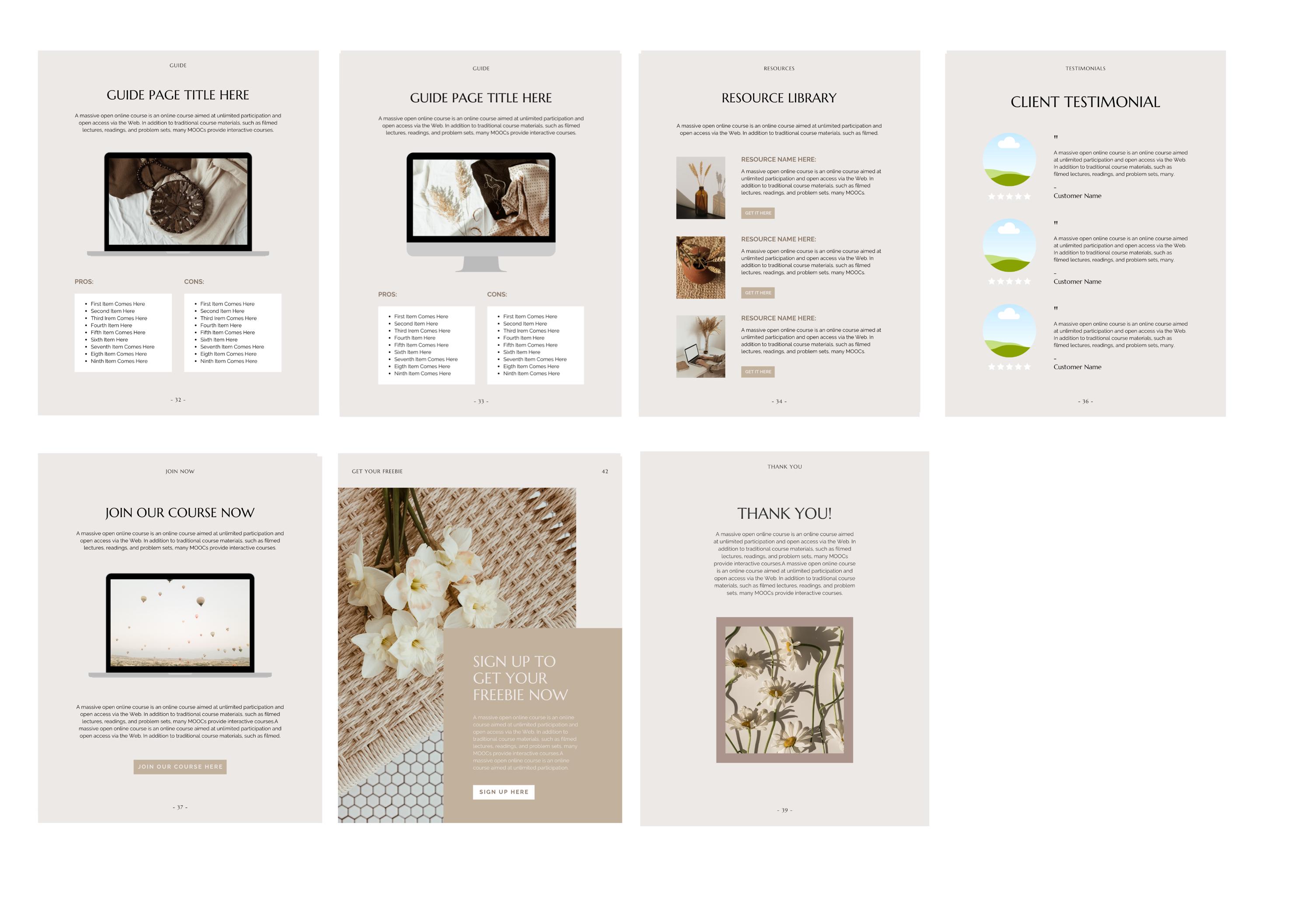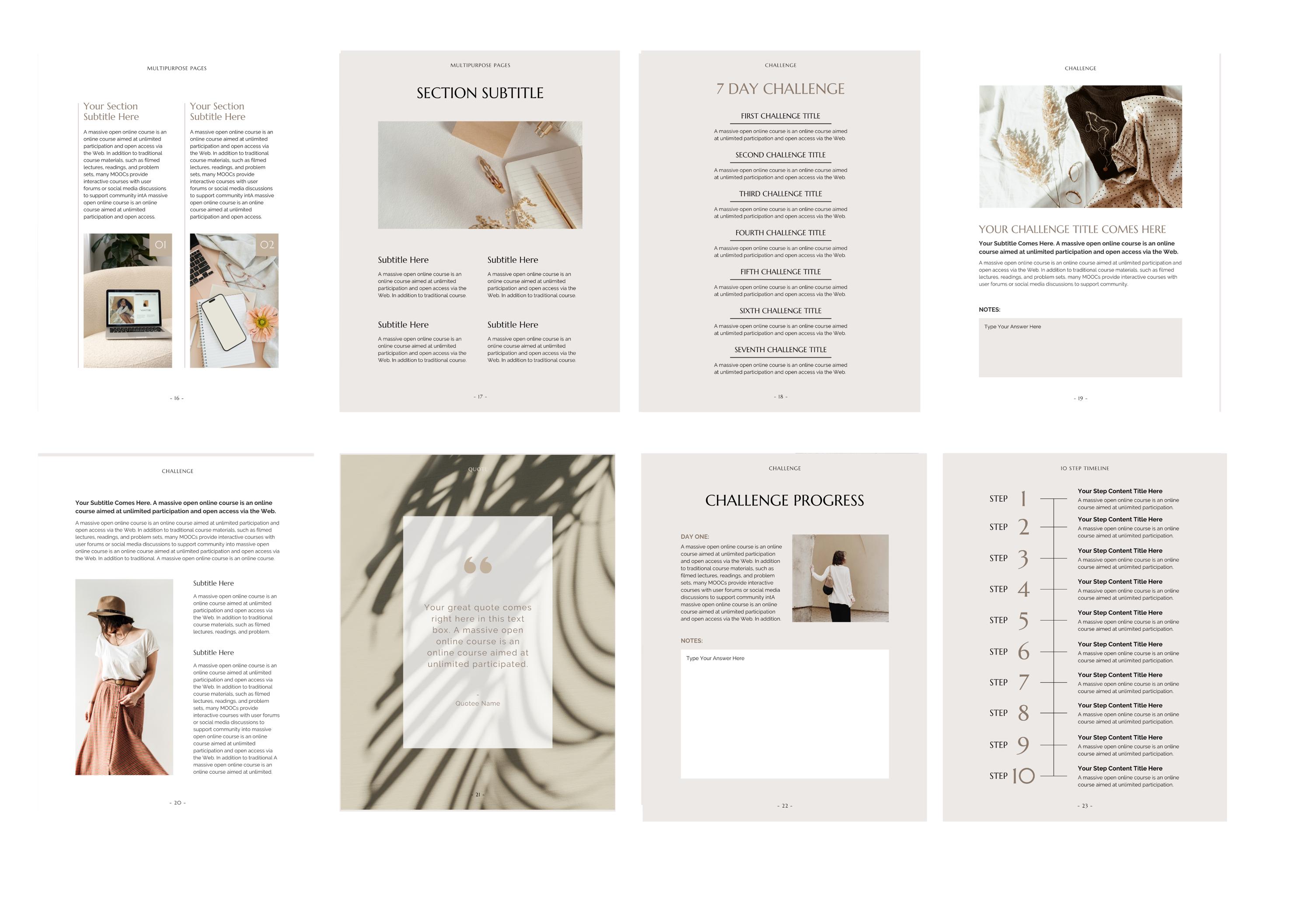 Crafted in a soft beige palette and timeless typeface, each page is thoughtfully designed to bring clarity, flow, and visual balance to your course materials.