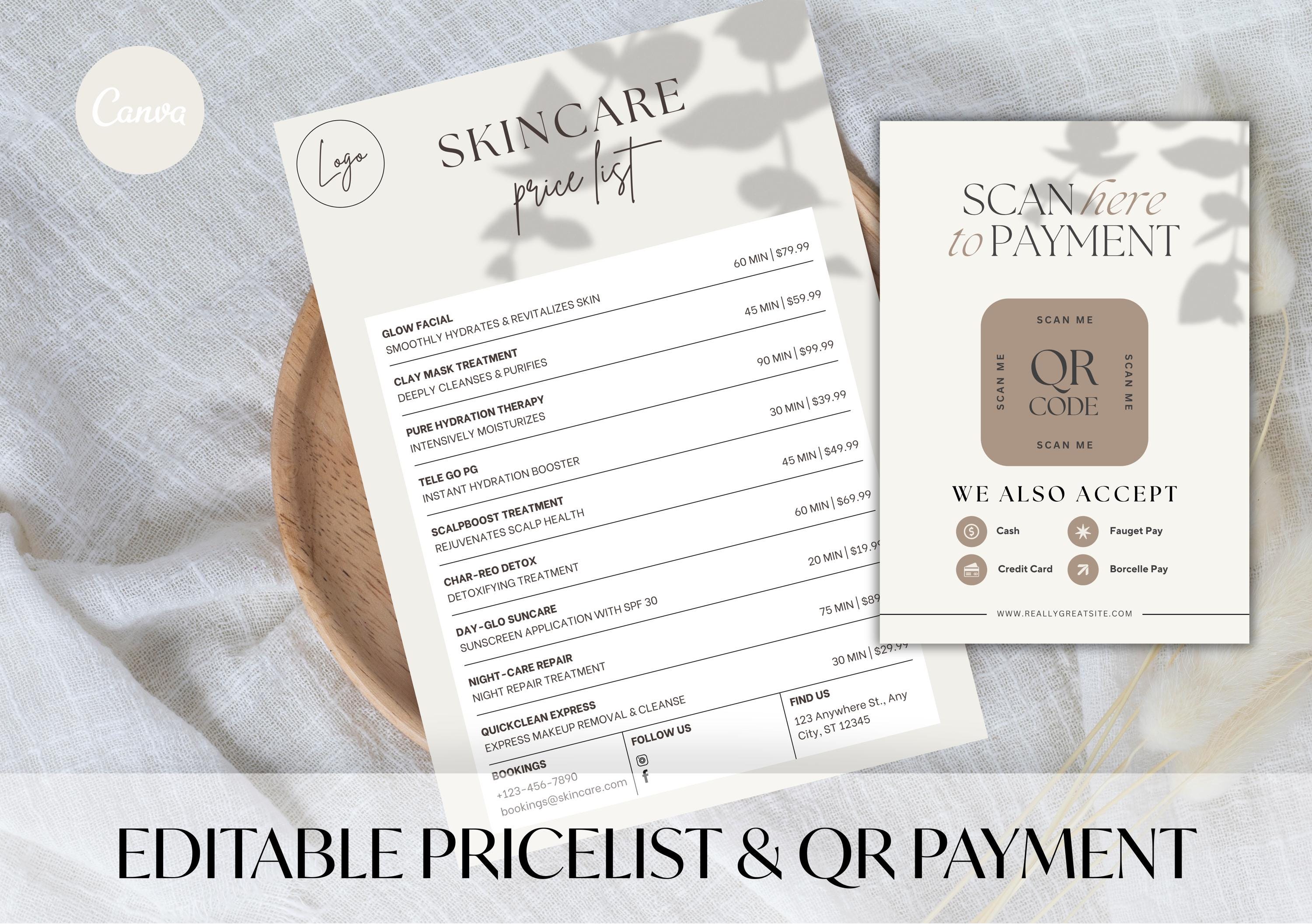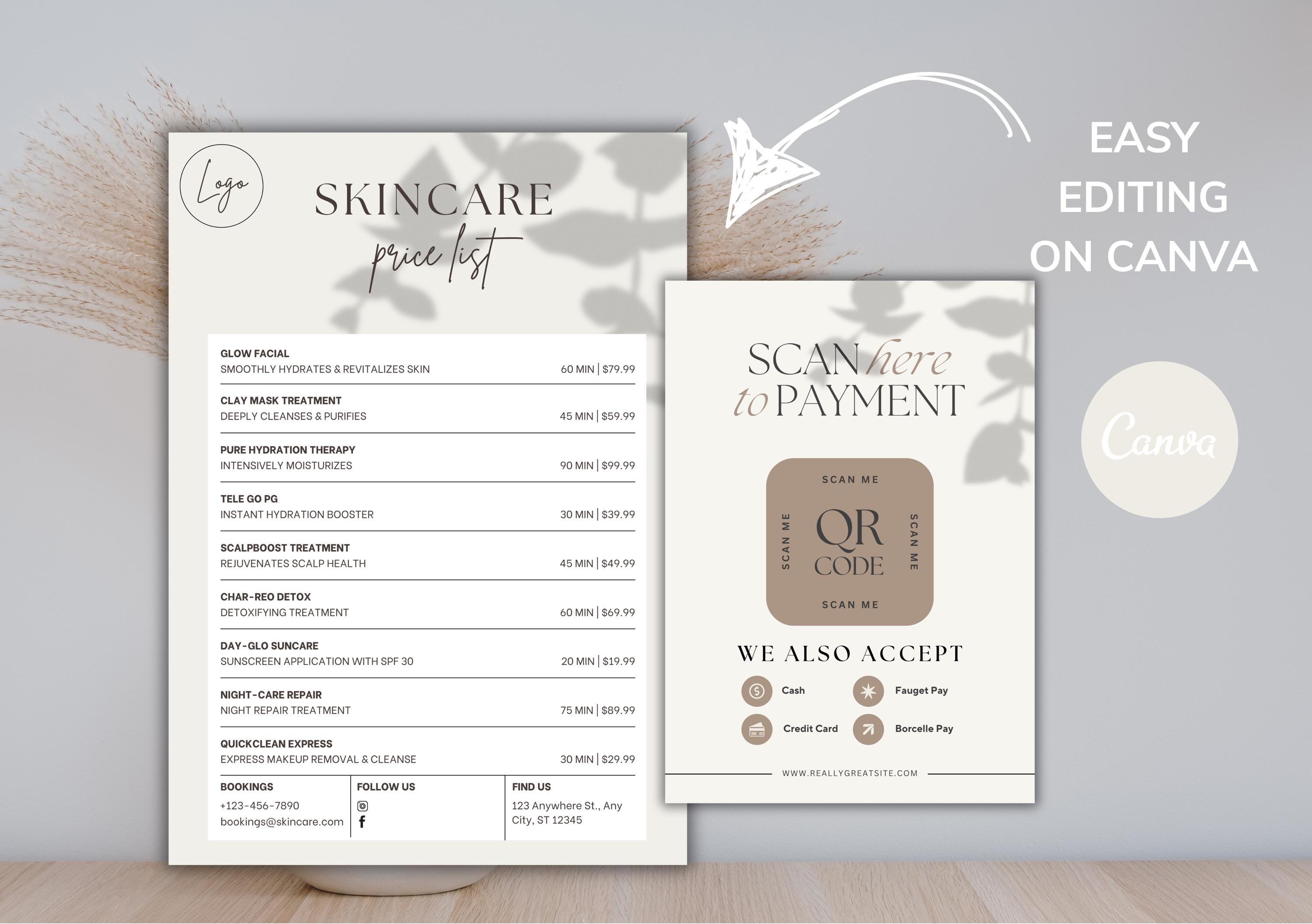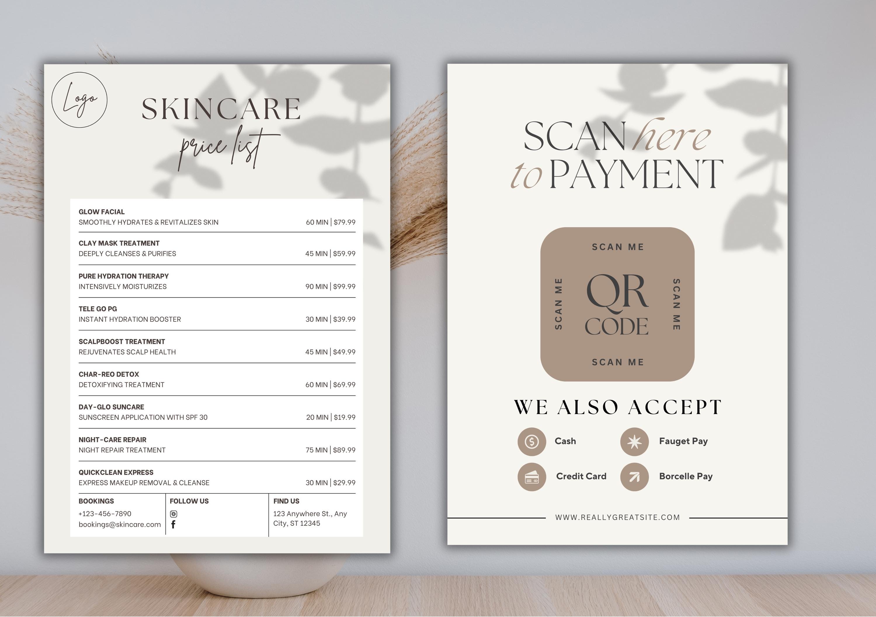 Make your business look professional and modern with this editable Price List & QR Code Sign Bundle. Perfect for salons, skincare studios, lash techs, and small businesses, this digital download helps streamline your pricing and contactless payment system.