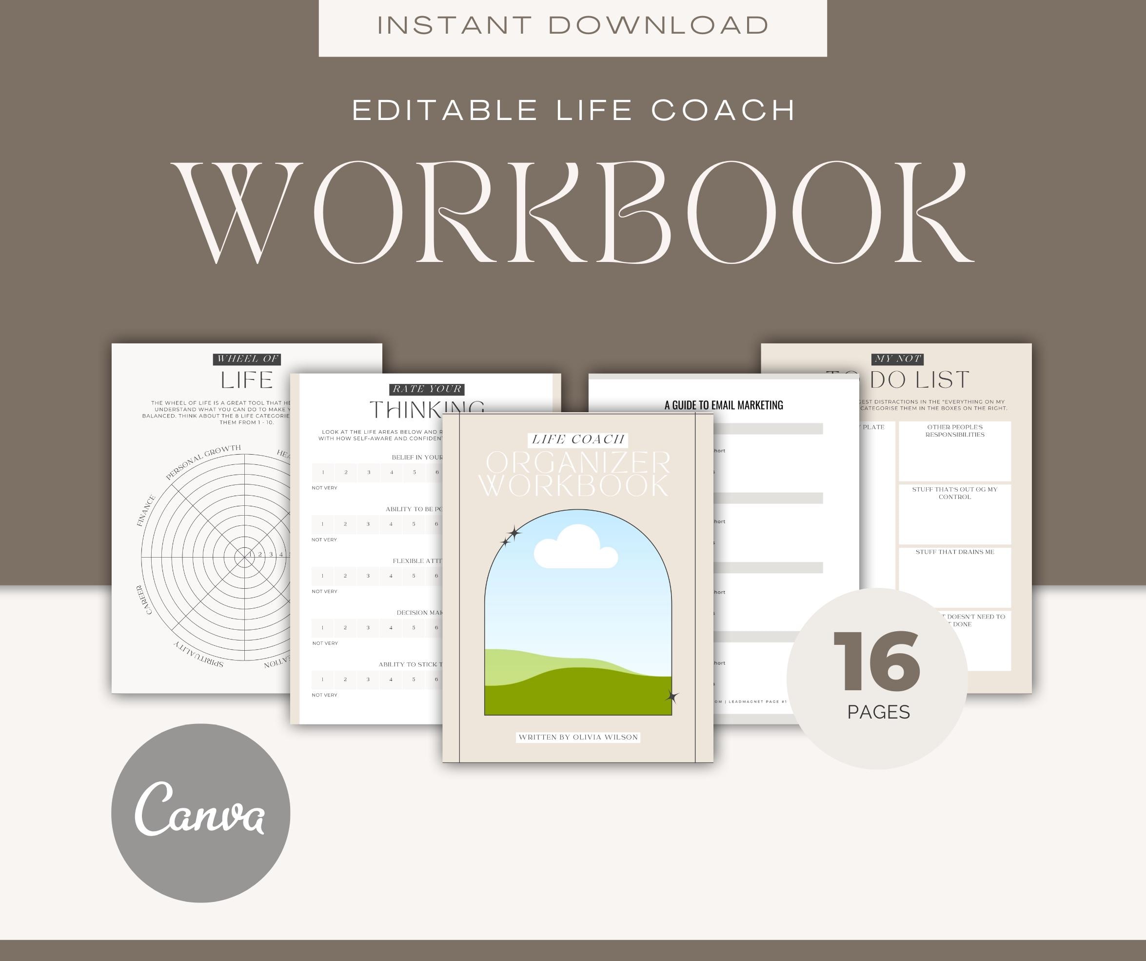 Life Coach Workbook Canva Template: 16-Page Planner (Digital Download)