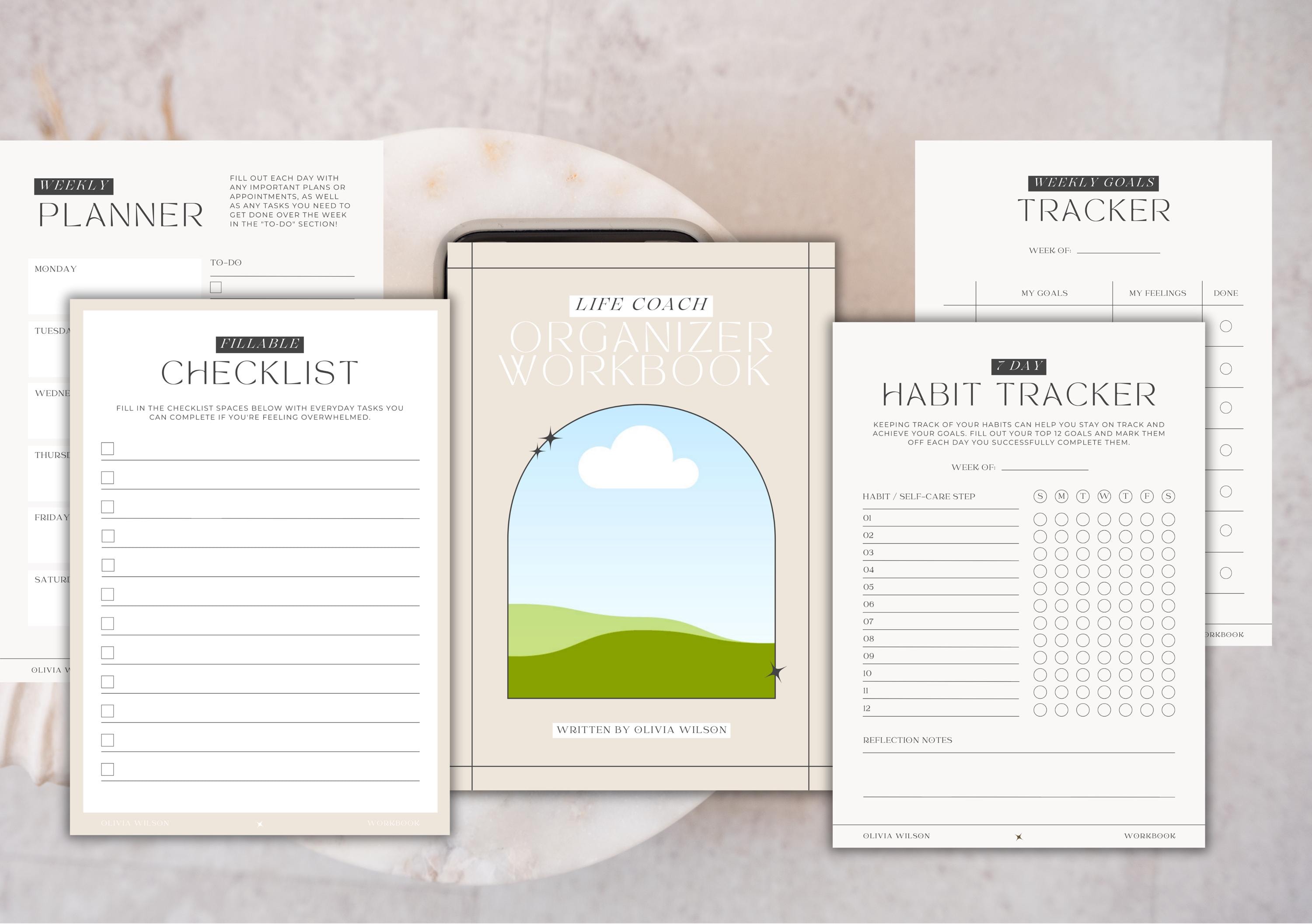 Streamline your client sessions or personal development journey with this elegant 16-page Life Coach Organizer Workbook!