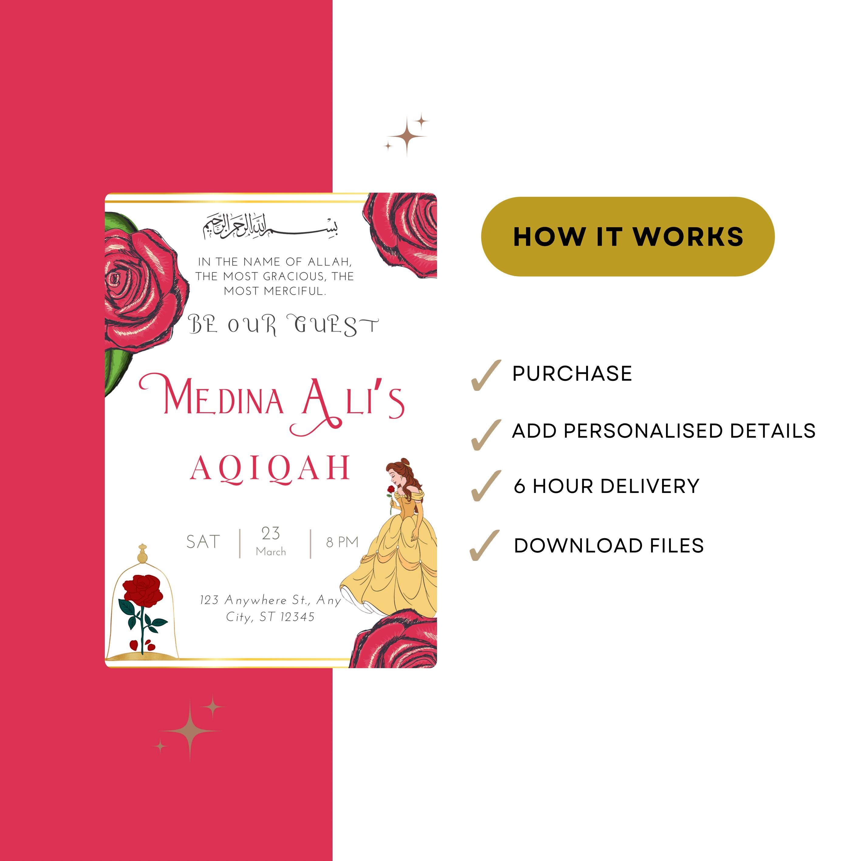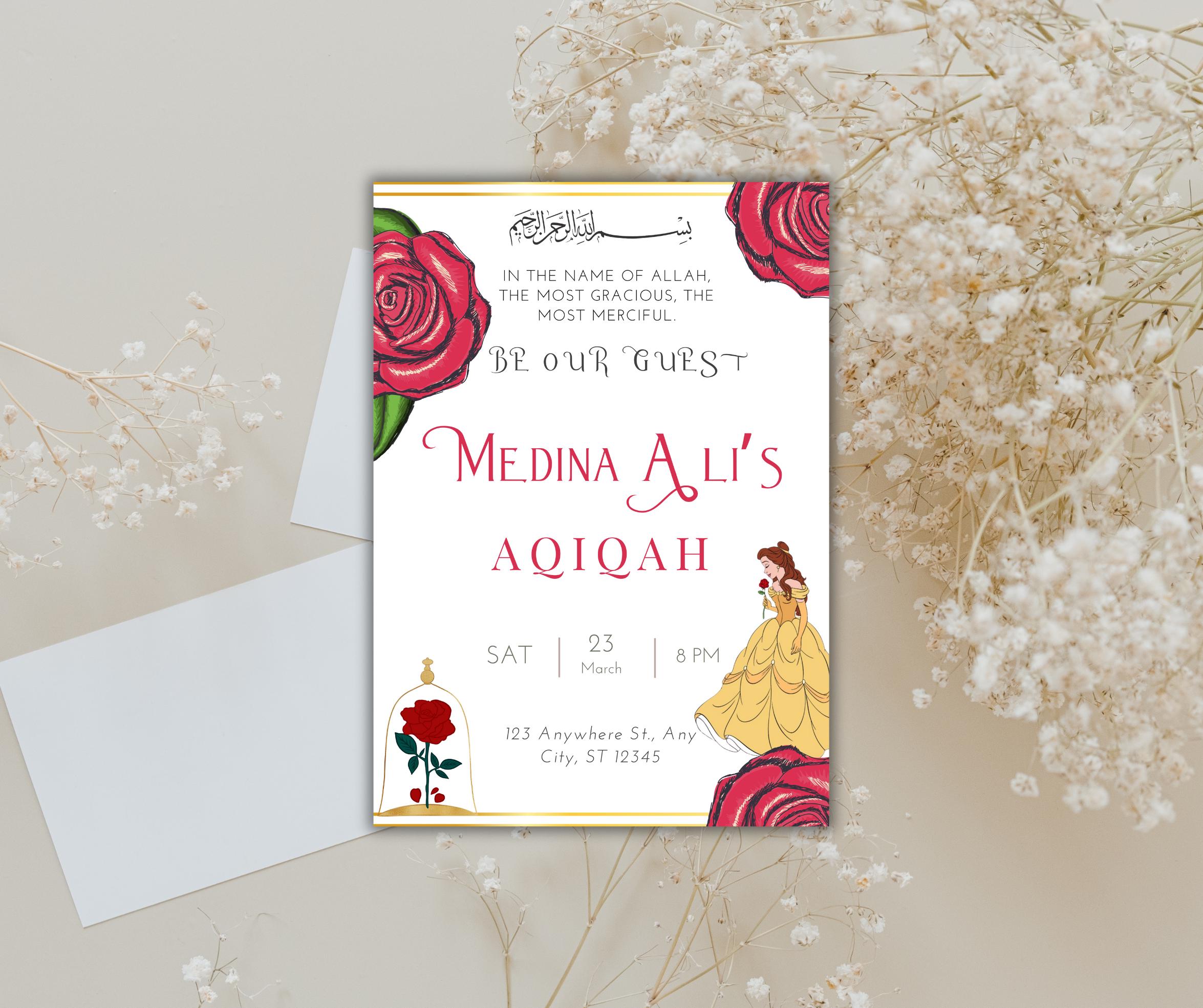 Beauty and the Beast Aqiqah Invitation: Belle Theme (Digital)