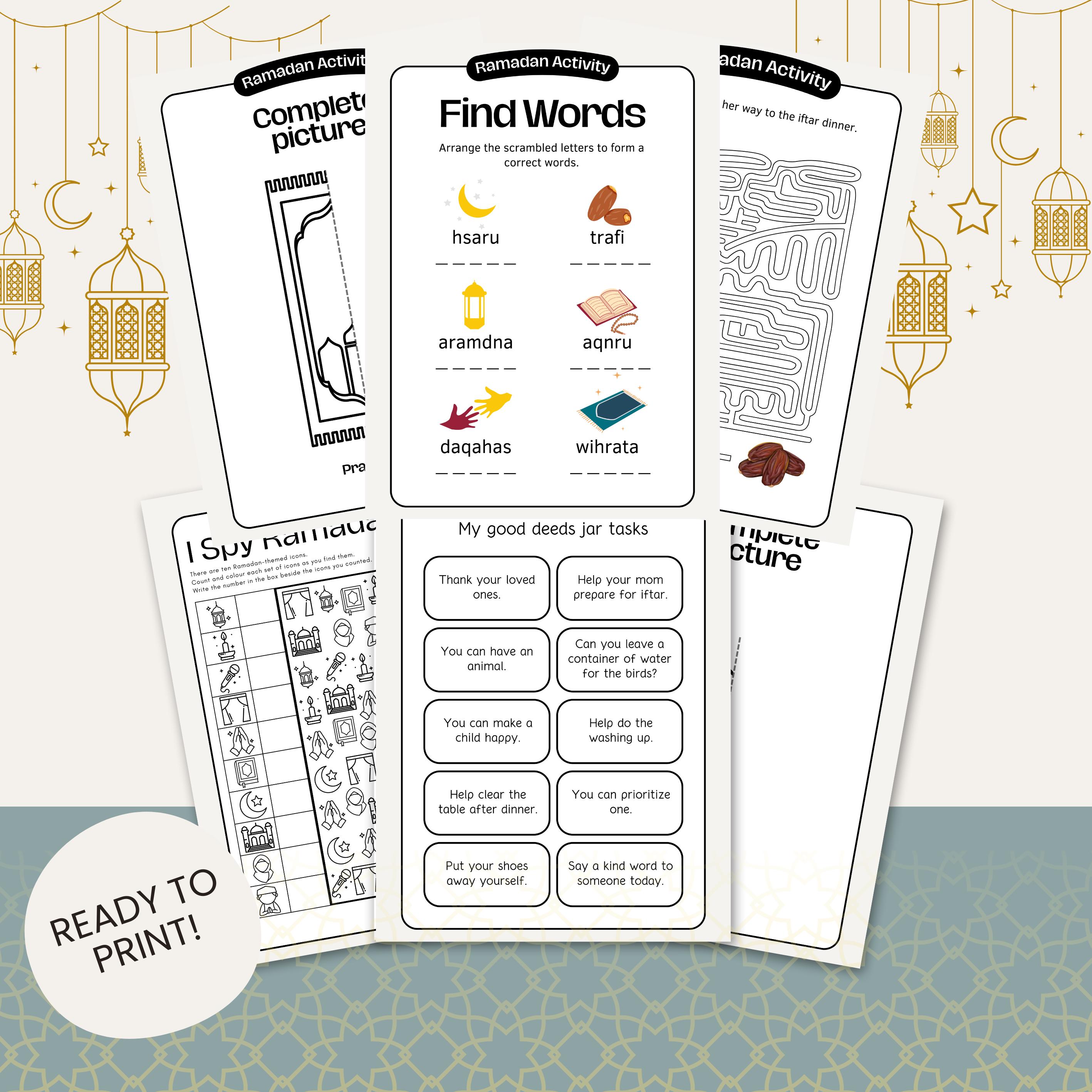 Ramadan Kids Activity Pack | Printable Islamic Worksheets (Instant Download)